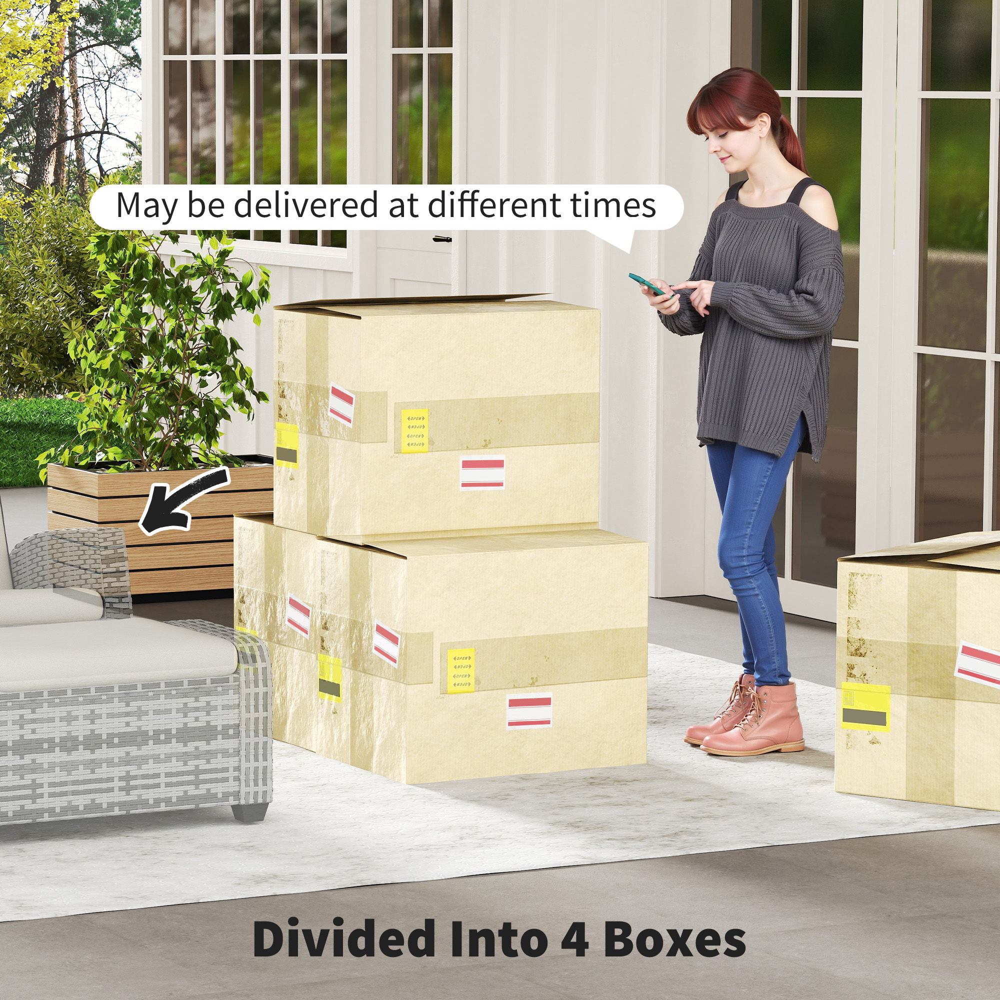 - Material: PE Rattan, Steel, Yarn-dyed Fabric (100% Polyester)