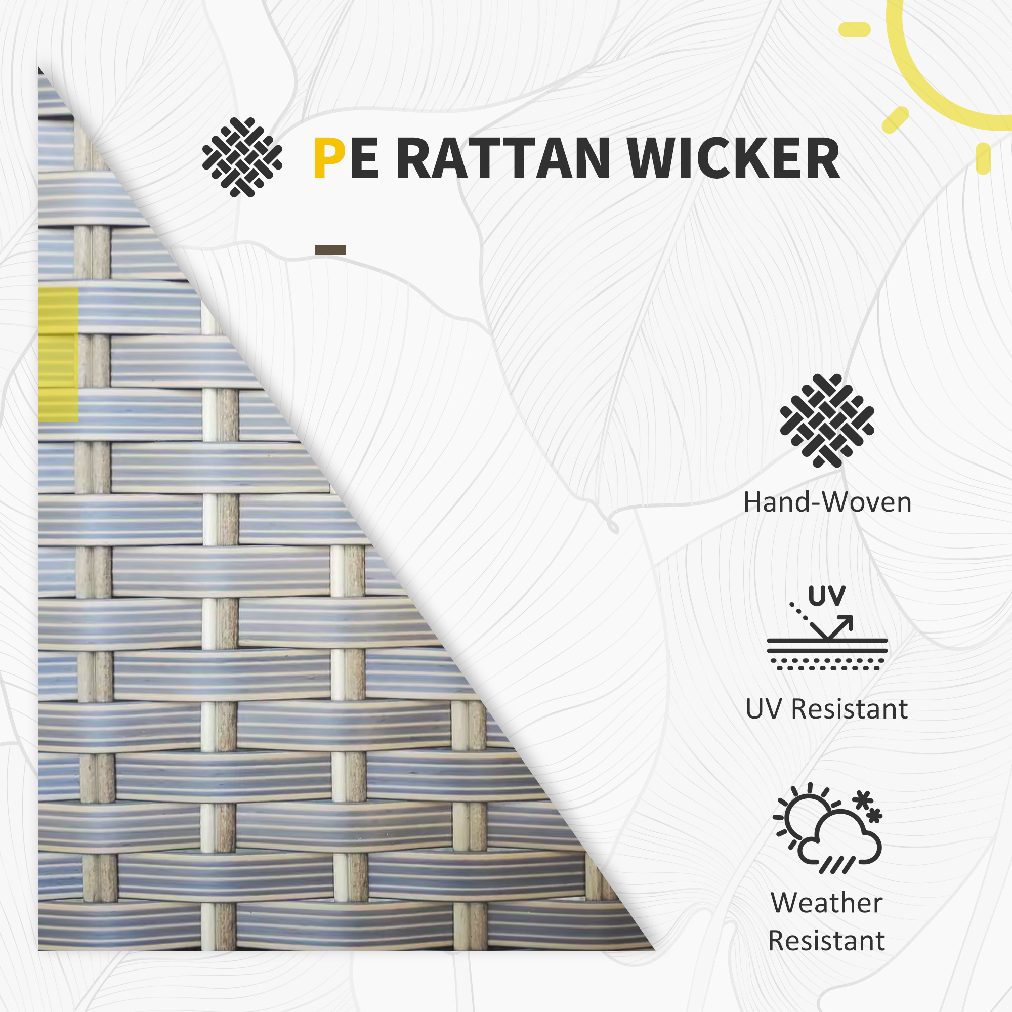 - Material: Galvanised Metal, PE Rattan, Yarn-dyed Fabric (Polyester)