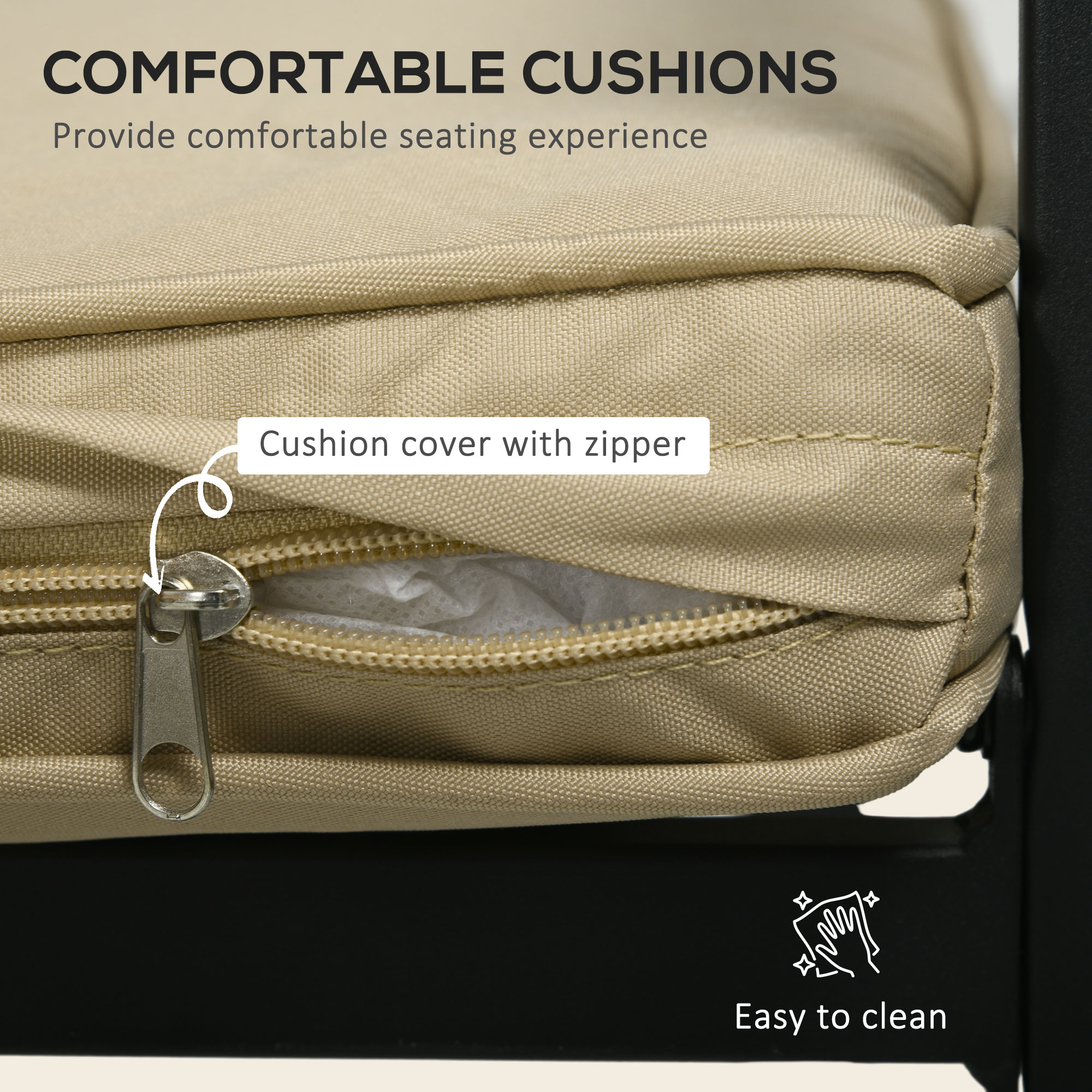 Make it minimal for outdoor catch ups with this Outsunny set. Made from metal, the four chairs and square dining table offer room to bring you and company together. The square dining table features a Φ50mm round hole in the centre - this holds a Φ38-Φ48mm parasol pole: keep shaded as you relax. Set complete with cushions to sit comfortably.