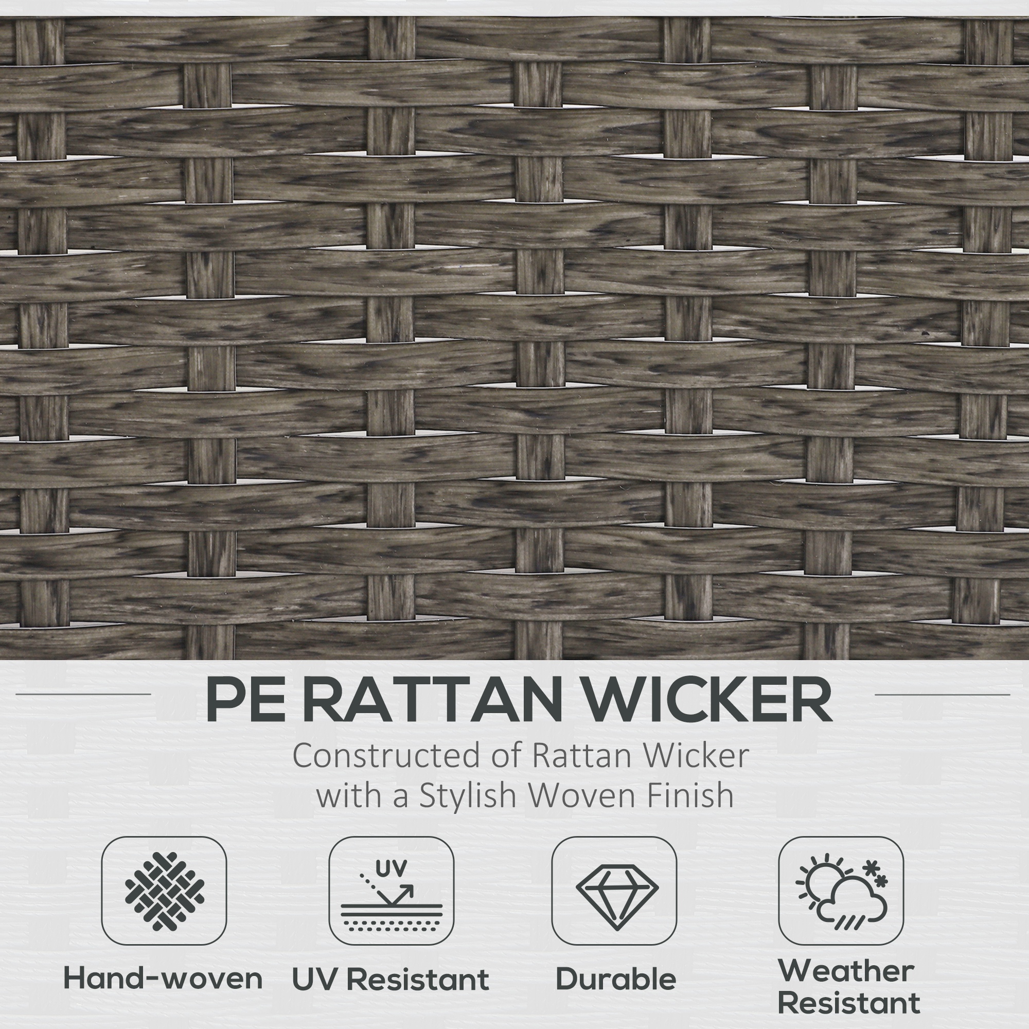 - Material: PE Rattan, Steel, Polyester