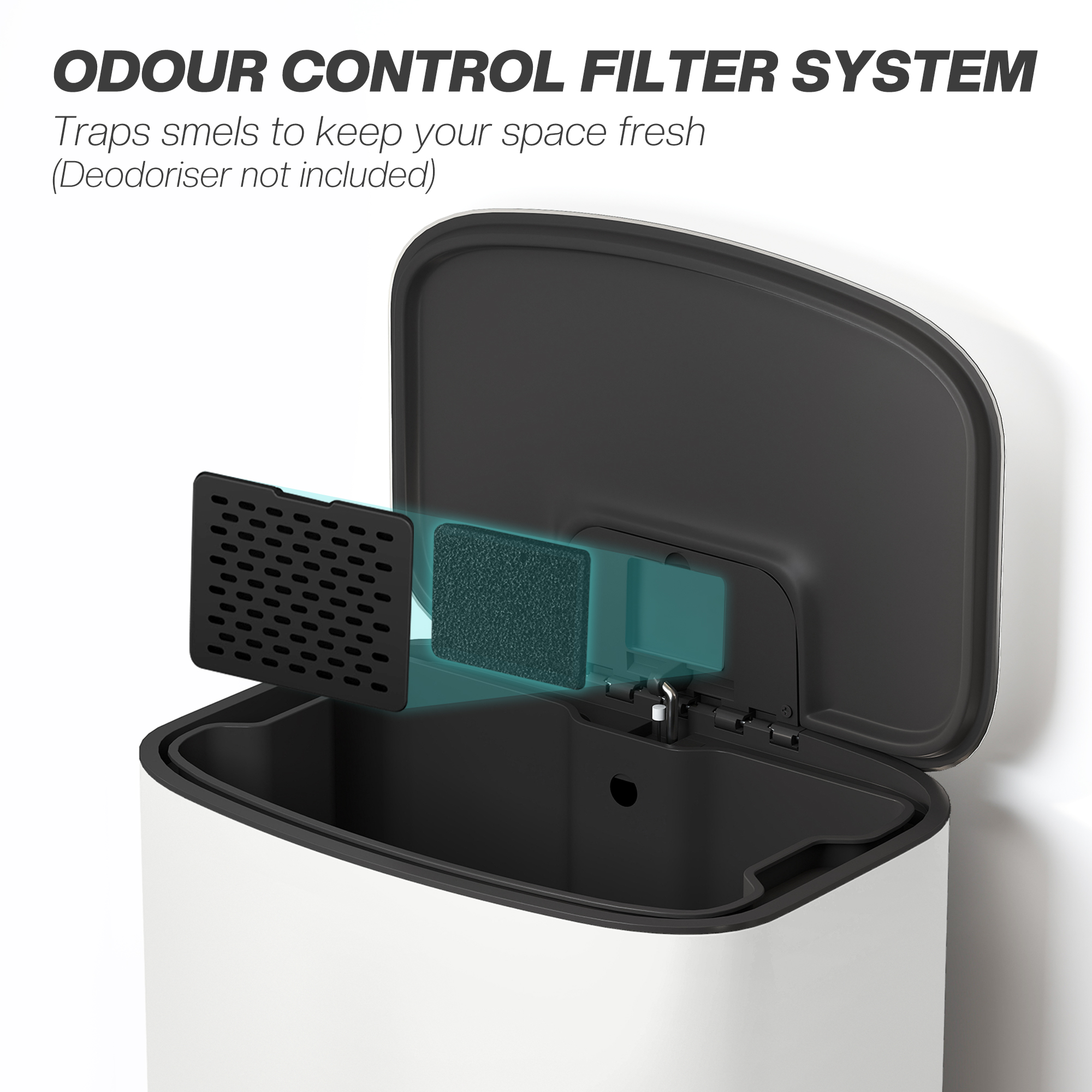 Tired of a noisy, smudged bin clashing with your home's decor? The constant clang of a lid can disrupt your peace, while fingerprints mar its surface. The HOMCOM kitchen pedal bin offers a serene solution. Its sleek design enhances any room, while the soft-close pedal operates silently. Crafted from fingerprint-resistant materials, this kitchen pedal bin maintains its clean look, effortlessly elevating your daily routine.