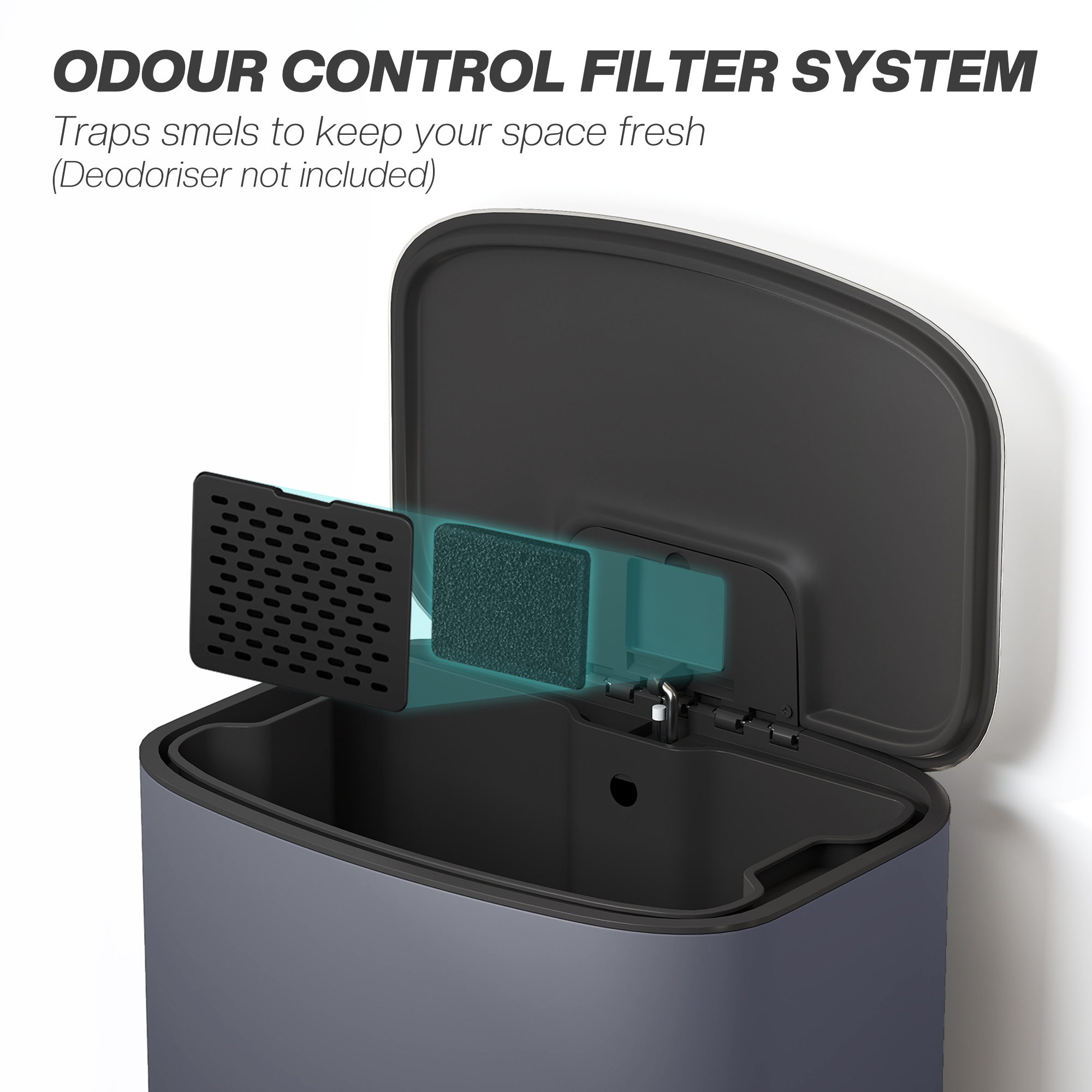 Tired of a noisy, smudged bin clashing with your home's decor? The constant clang of a lid can disrupt your peace, while fingerprints mar its surface. The HOMCOM kitchen pedal bin offers a serene solution. Its sleek design enhances any room, while the soft-close pedal operates silently. Crafted from fingerprint-resistant materials, this kitchen pedal bin maintains its clean look, effortlessly elevating your daily routine.