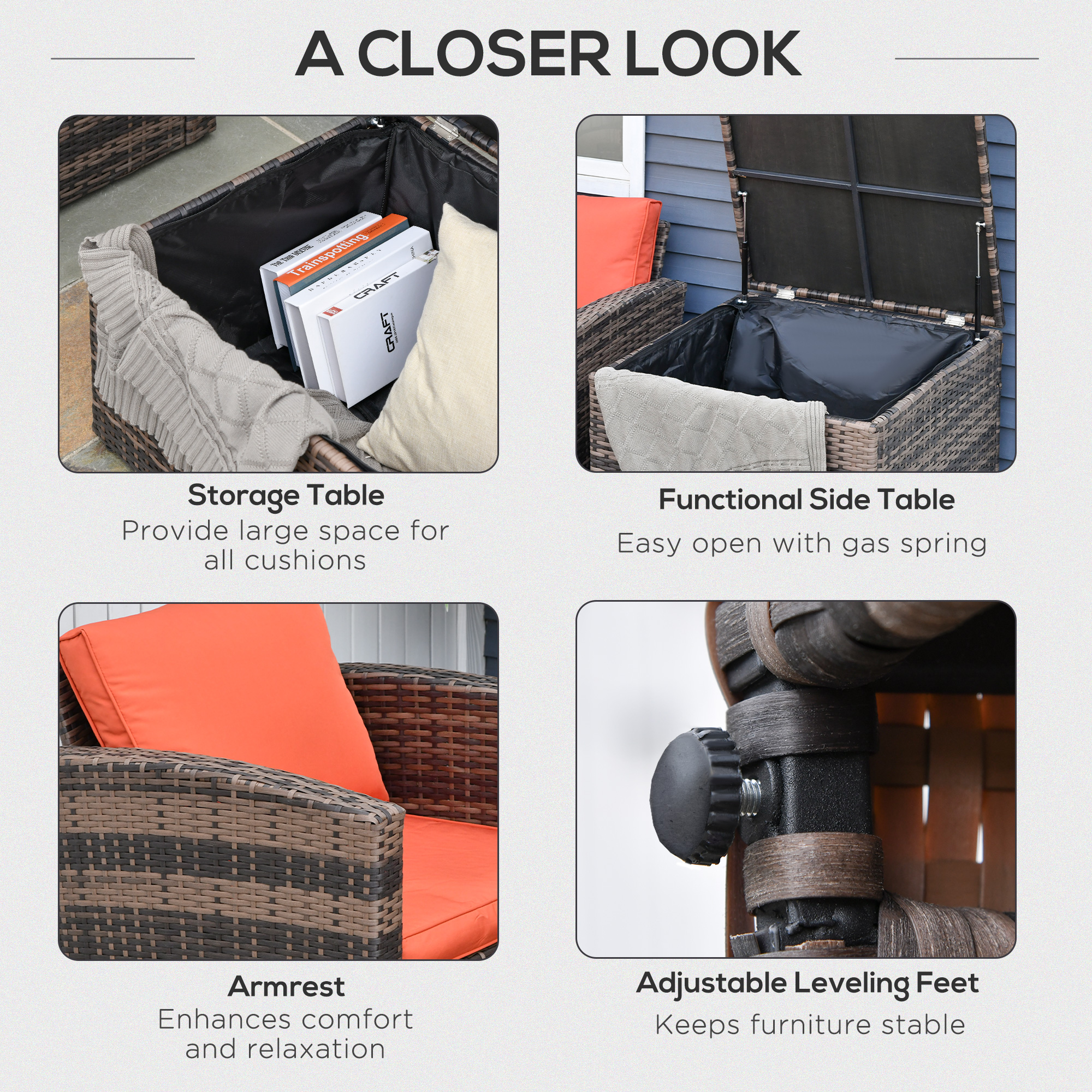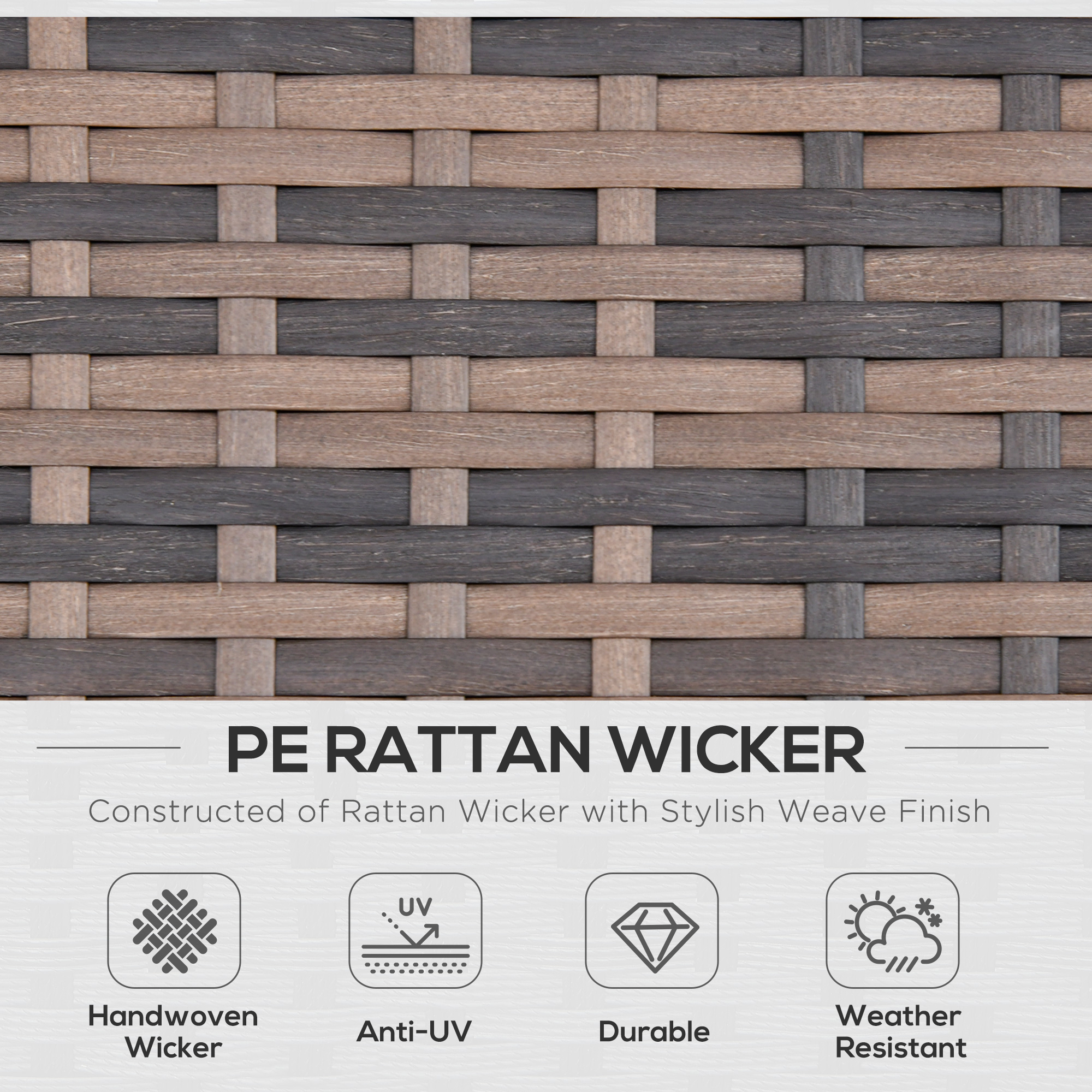- Material: PE Rattan, Steel, Polyester