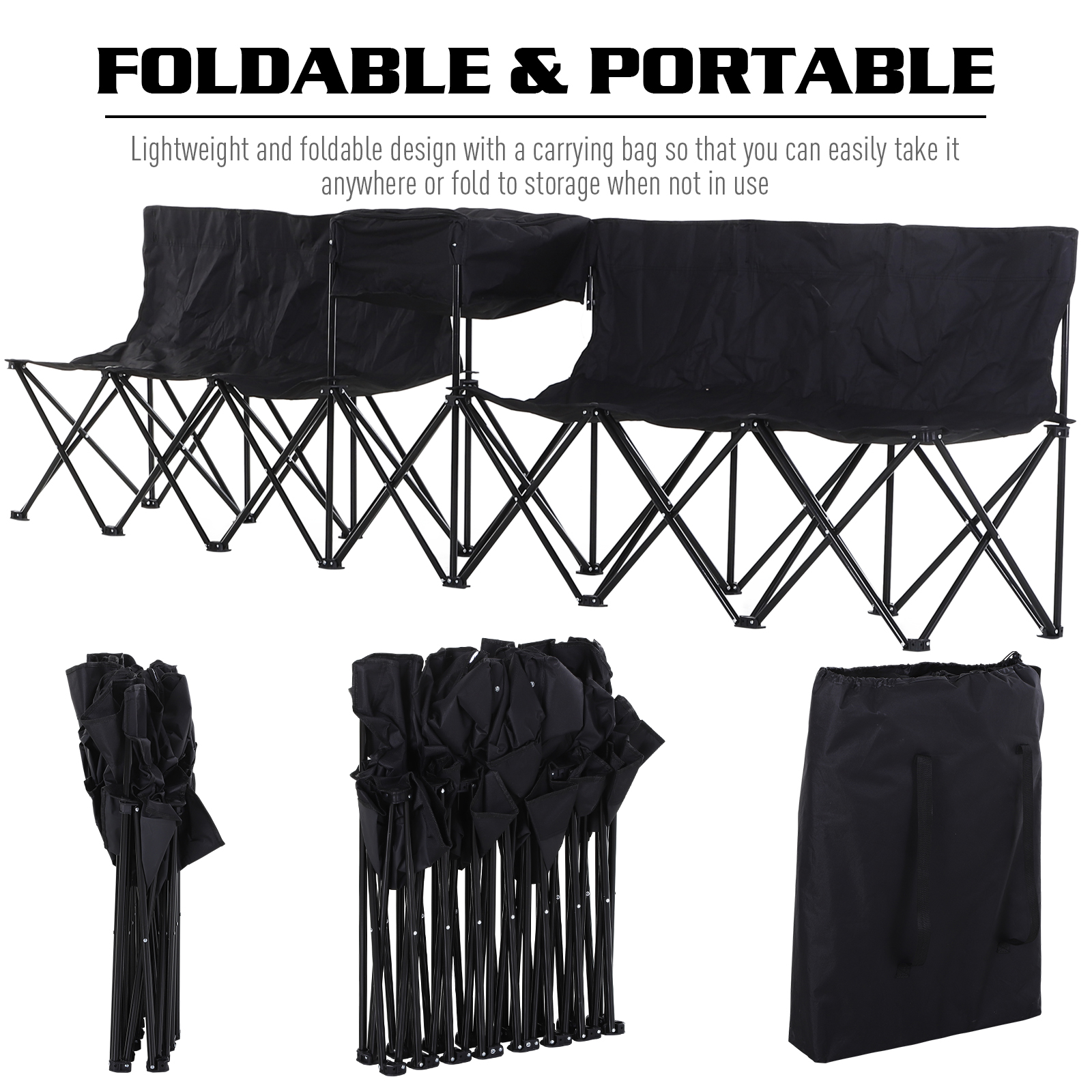 Keep multiple people seated at once during outdoor trips, BBQs and festivals with this folding bench from Outsunny. Using steel for the frame to provide enduring strength and reliability whilst being used, it is made into a long 306cm design, formed of six Oxford cloth seats which all measure 44cm x 41cm – giving every person plenty of room to sit comfortably. Cross-over legs on each leg help provide a point of balance to ensure the whole unit stays in place, regardless of how people are spread out. Foldable and lightweight so you can pick this up and store it away easily, this chair is finished with a cooler box in the middle to keep drinks and snacks nicely chilled. The best way to enjoy leisure time with your friends all together at once.