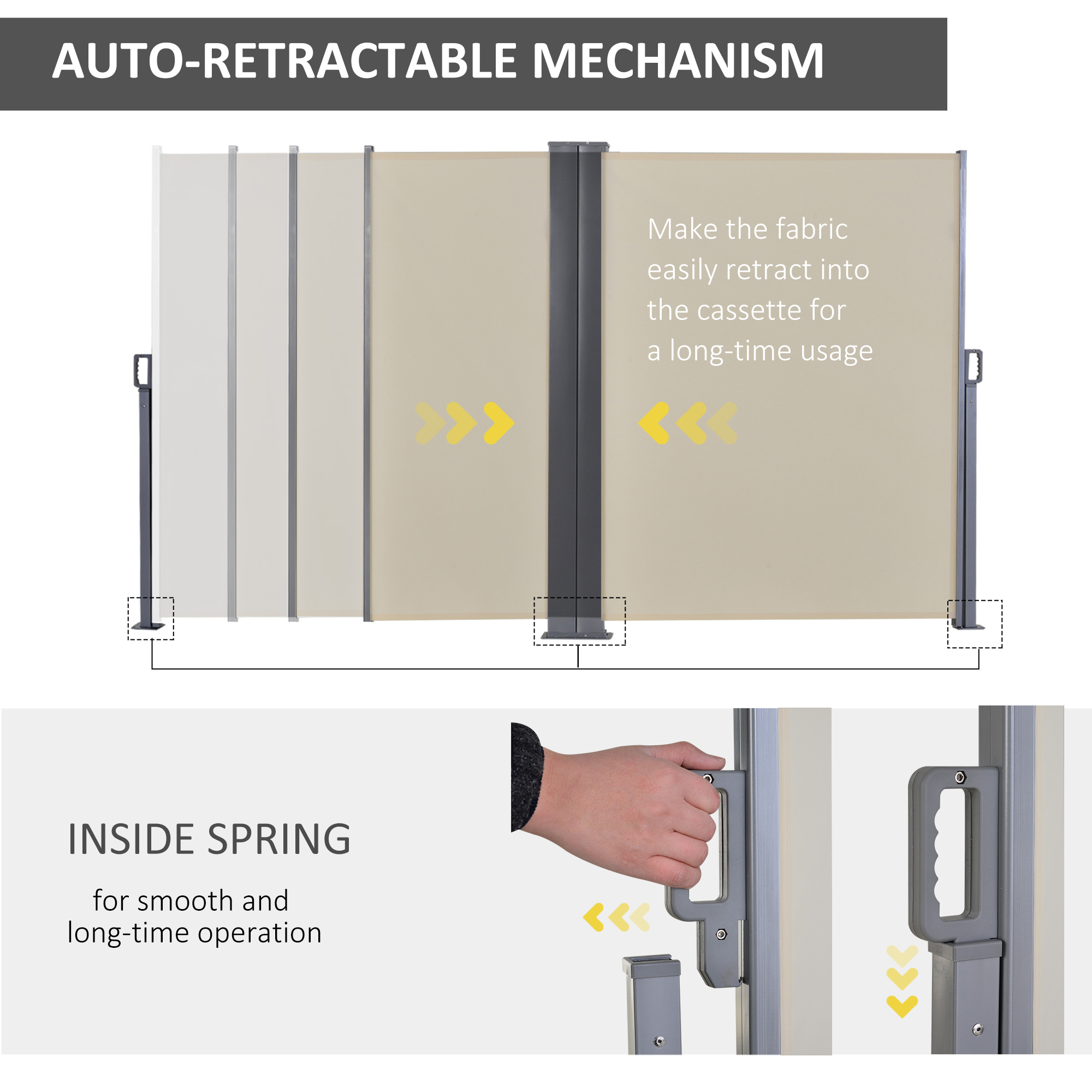 - Easy to use and set up: simply position and fix the two steel frames to cement/solid wood, where the canopy will extend and fix from a steel post to the other securely
