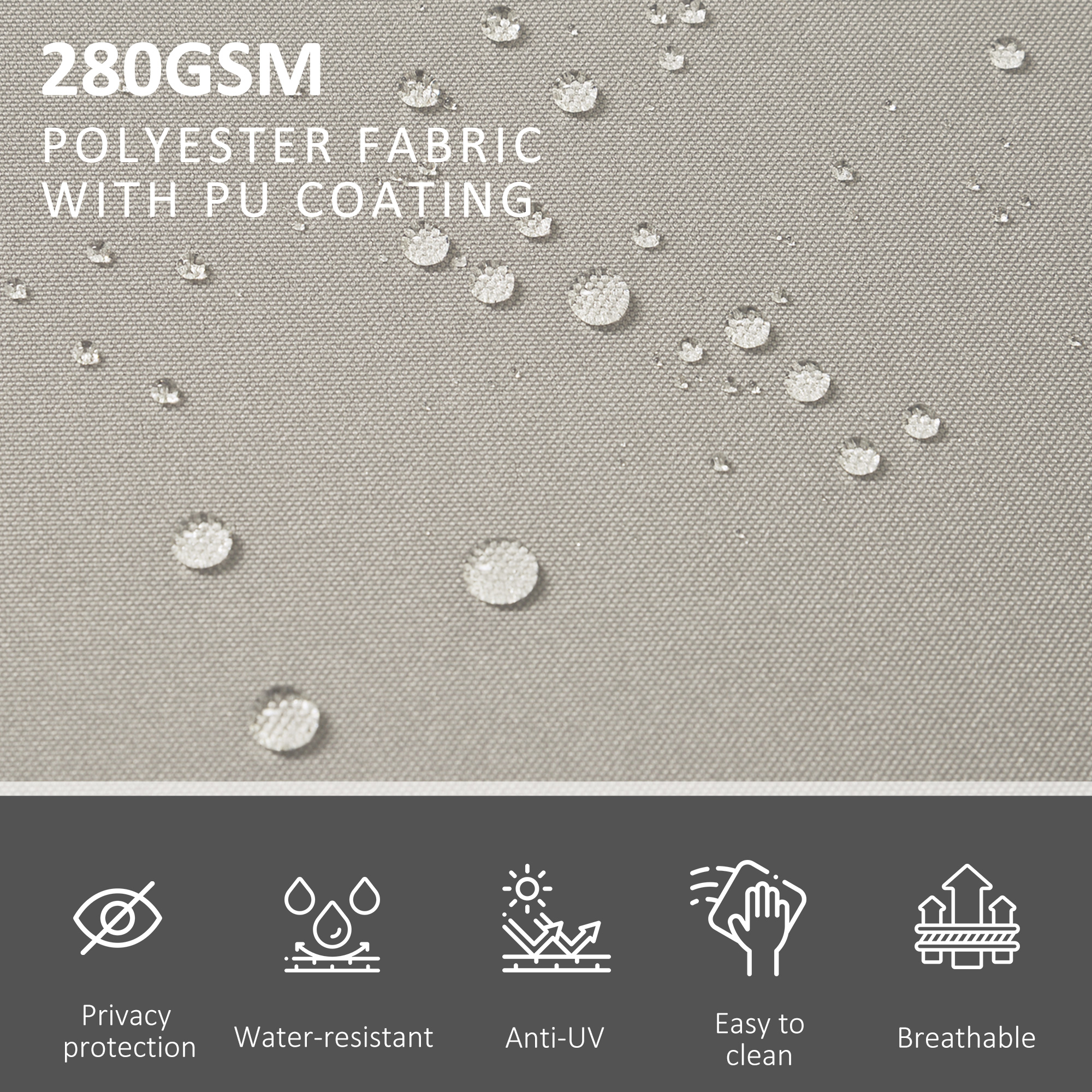 - 280gsm polyester canopy with PU coating is tough and resistant to mild weather