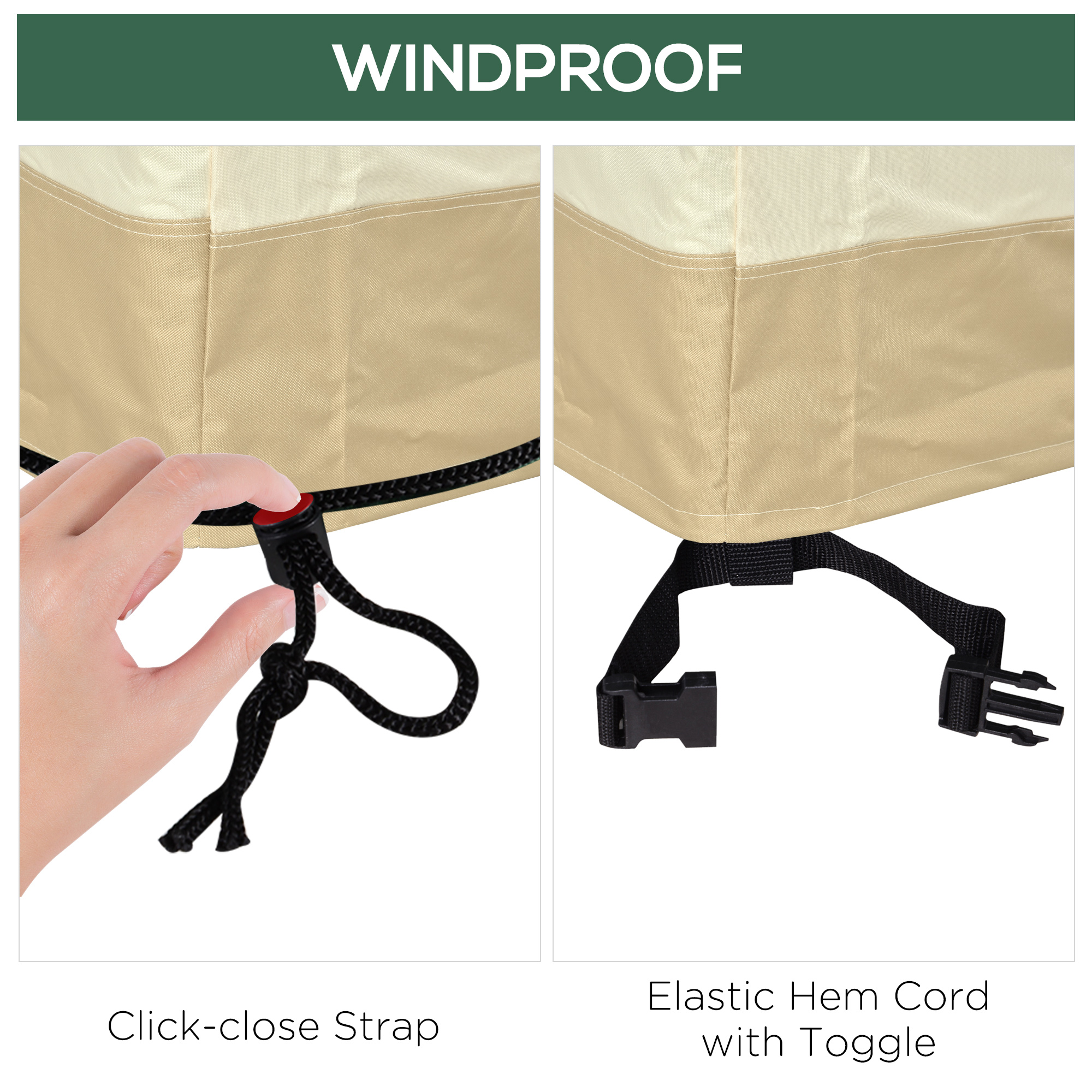 - Click-close strap and plastic buckles to secure cover in the windy days