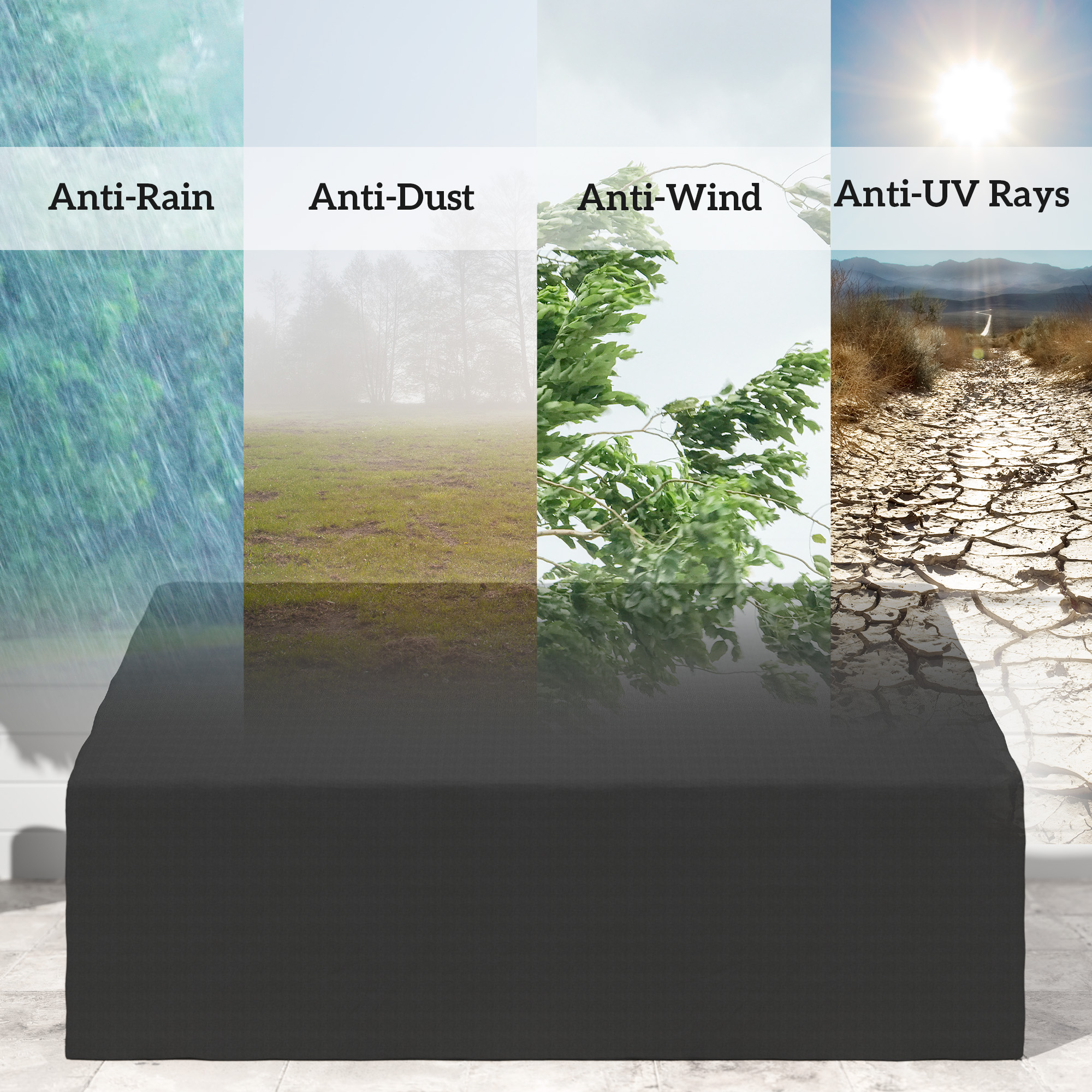 - With fixing bandage in four corners to secure cover in the windy days