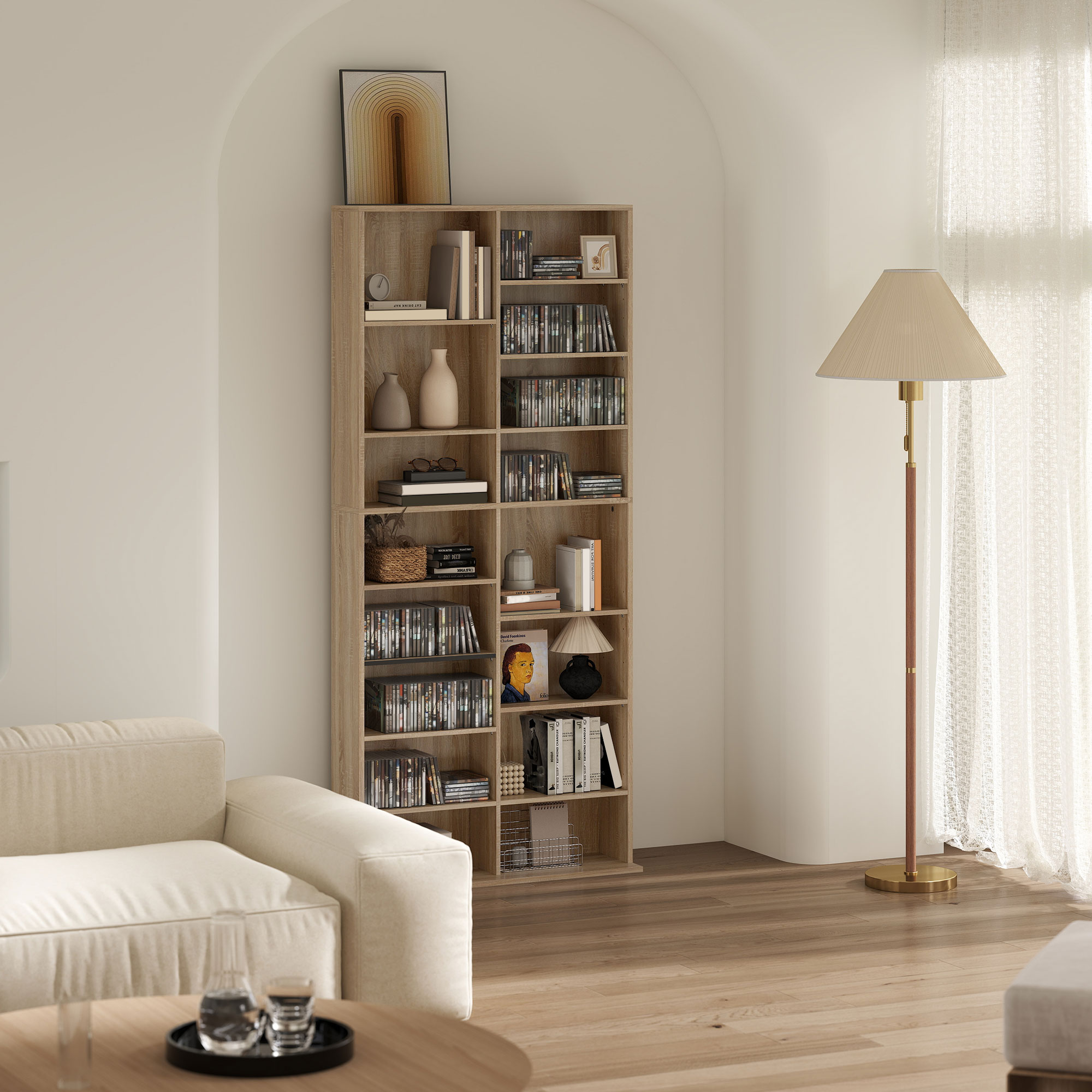 An easy and simple solution for keeping media stored, in the home and beyond - this HOMCOM storage unit. It holds up to 640 CDs, or 360 DVDs, with 14 adjustable shelves for customisable storage. The CD shelf is made from tough particle board with a smooth melamine coating, complete with anti-tipping straps included to secure to a wall.