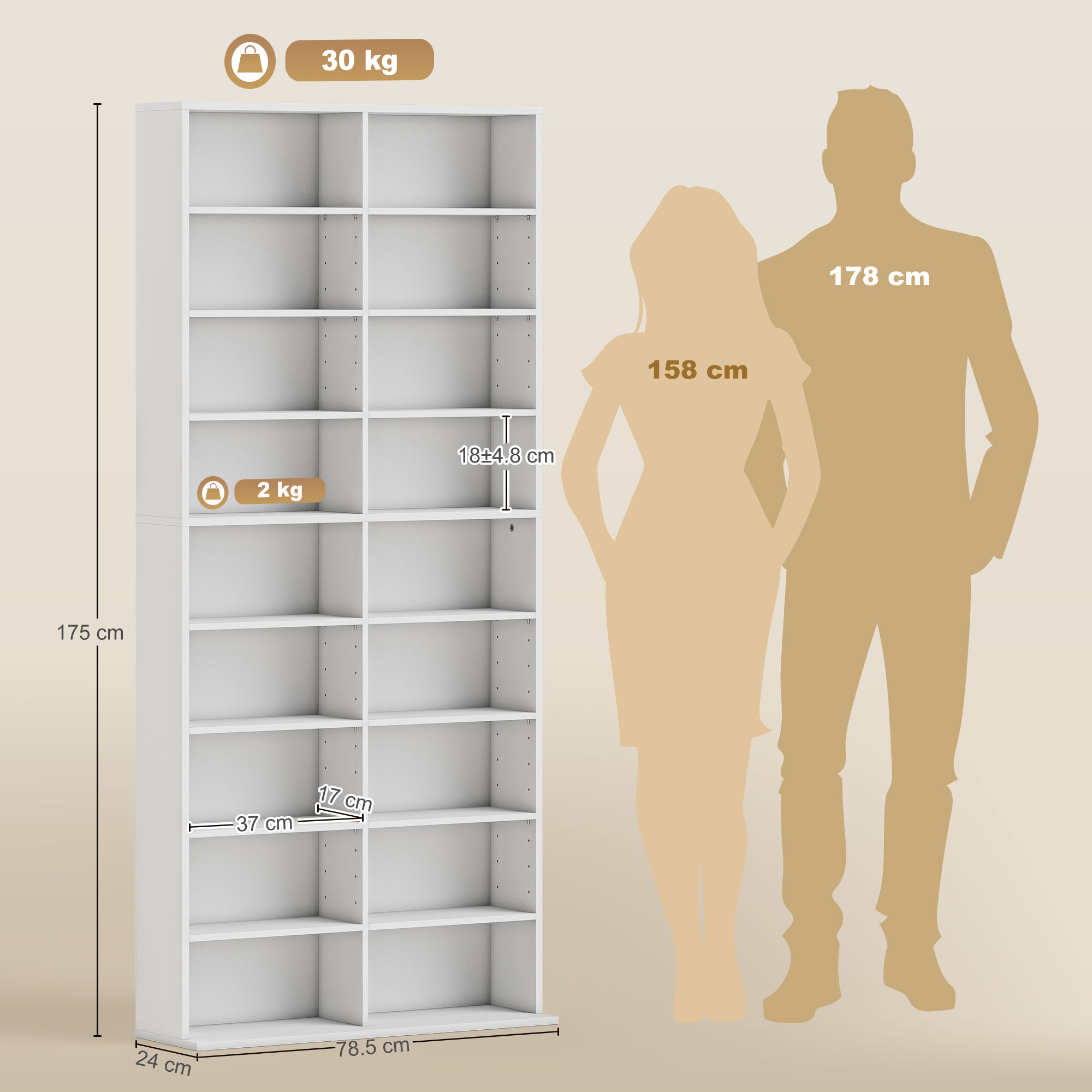 An easy and simple solution for keeping media stored, in the home and beyond - this HOMCOM storage unit. It holds up to 640 CDs, or 360 DVDs, with 14 adjustable shelves for customisable storage. The CD shelf is made from tough particle board with a smooth melamine coating, complete with anti-tipping straps included to secure to a wall.