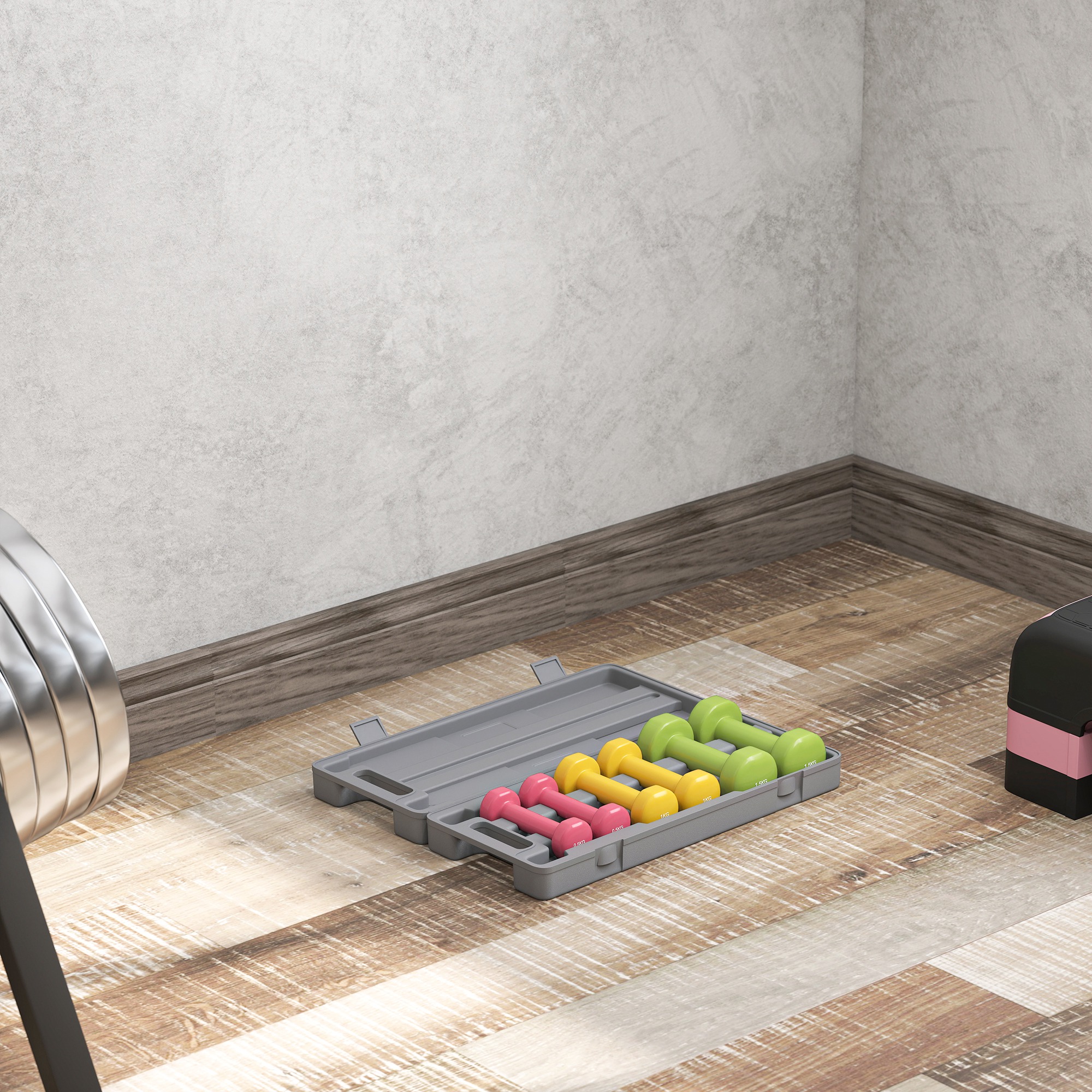 Elevate your home workout routine with the versatile HOMCOM dumbbell set, designed for those who value convenience and variety in their fitness journey. Perfect for lifting, cardio, yoga, squats, and more, this set includes three pairs of dumbbells (0. 5kg, 1kg, and 1. 5kg) to meet diverse training needs. The vibrant colors and clear numbers make organization effortless, while the handy suitcase ensures easy storage and portability. Embrace a healthier lifestyle.
