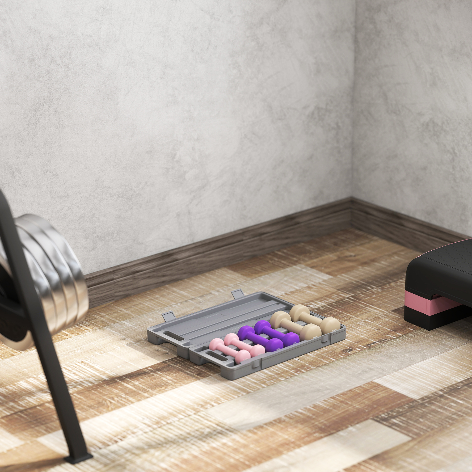 Stay active at home with our HOMCOM dumbbell set. With three pairs of dumbbells, weighing 0. 5kg, 1kg and 1. 5kg respectively, it's suitable for lifting, cardio, yoga, squats, get-ups and more, satisfying your different training needs. Bright colours and easy-to-read numbers, they're easy to organise for an efficient workout. Plus, it comes with a convenient suitcase for easy storage and travel. Never miss a session with this adjustable dubbells pair, maximising your fitness potential.
