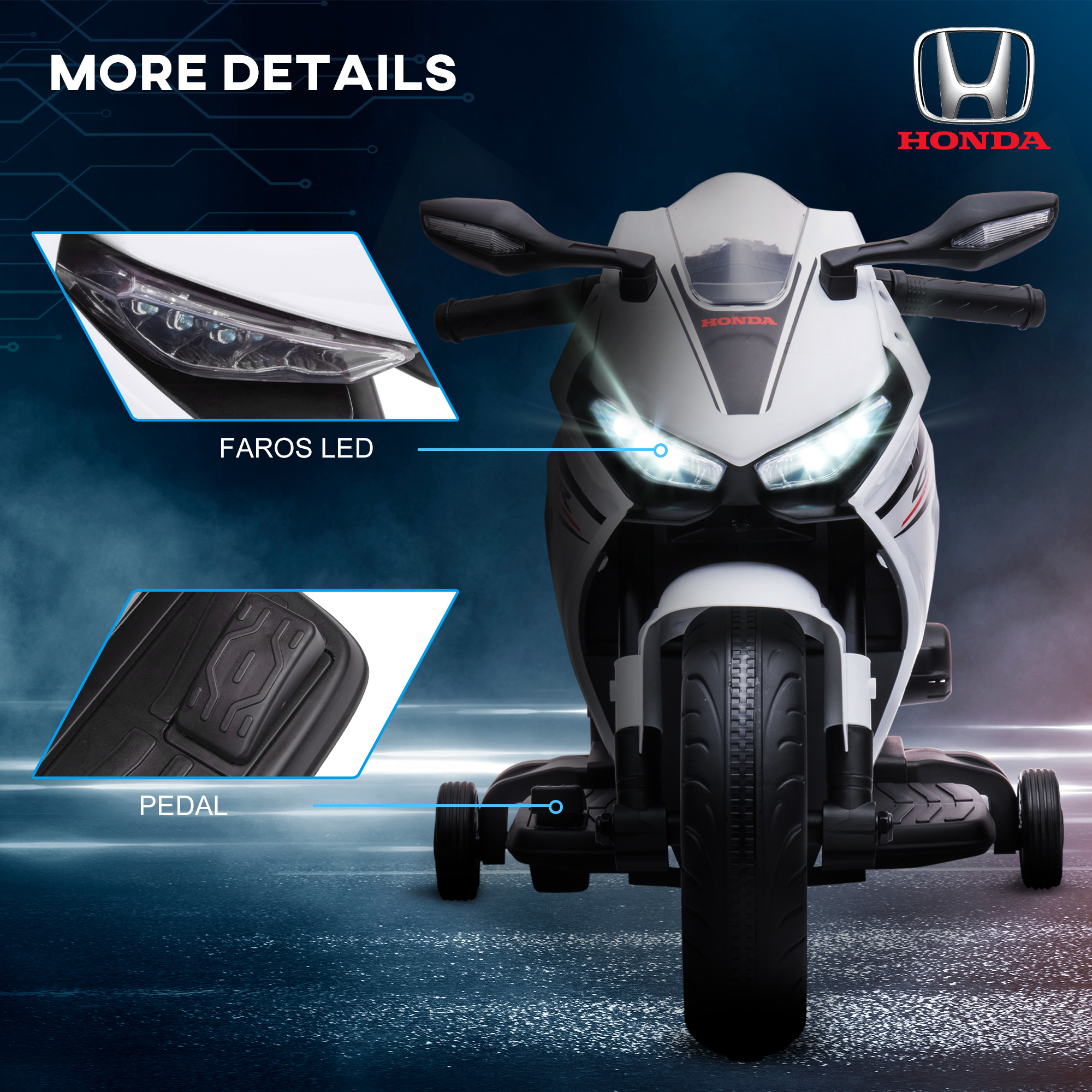 Excitement, fun, and adventure – that's what you get with this HOMCOM kids motorbike. Its white and black appearance is sporty, licensed by Honda, making kids feel like prime motorsport drivers. They won't go too fast with a 3km/h maximum speed, while the removable training wheels keep beginners adequately balanced. Electric bikes for kids to capture the imagination even further feature realistic sounds, light, and music. They are finished with a rechargeable battery, lasting for 45 minutes.