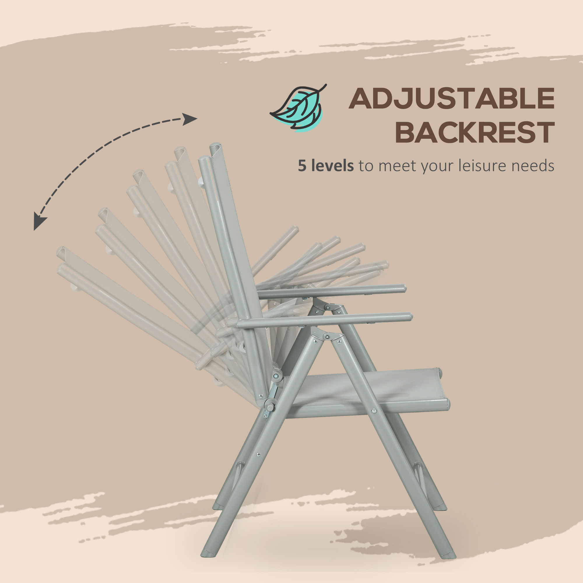 - Chairs feature high backs. Each back is adjustable to five different positions. Breathable and comfortable texteline fabric on each chair