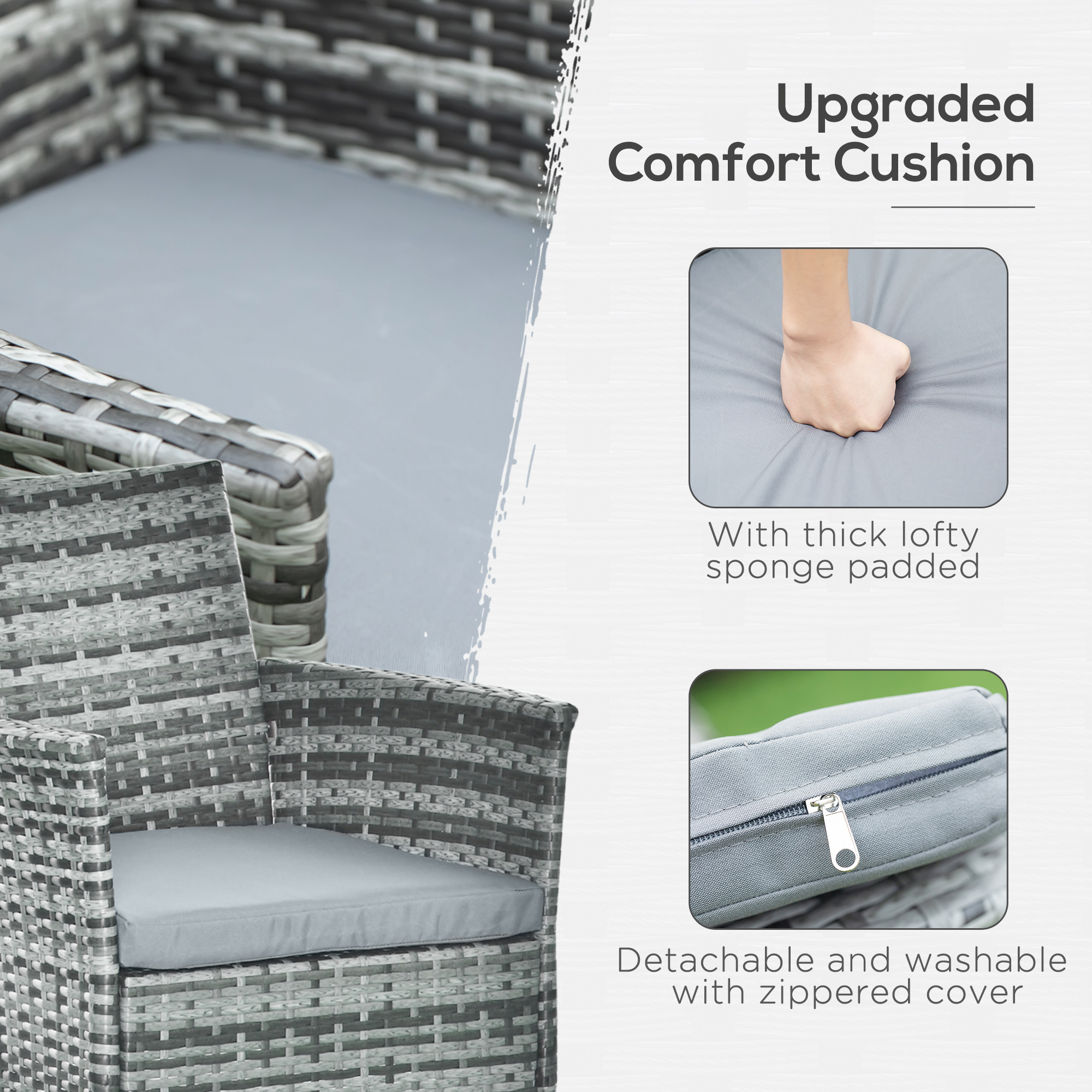 - Detachable cushion cover made of 180g/㎡ polyester has zipper for smooth opening and closing