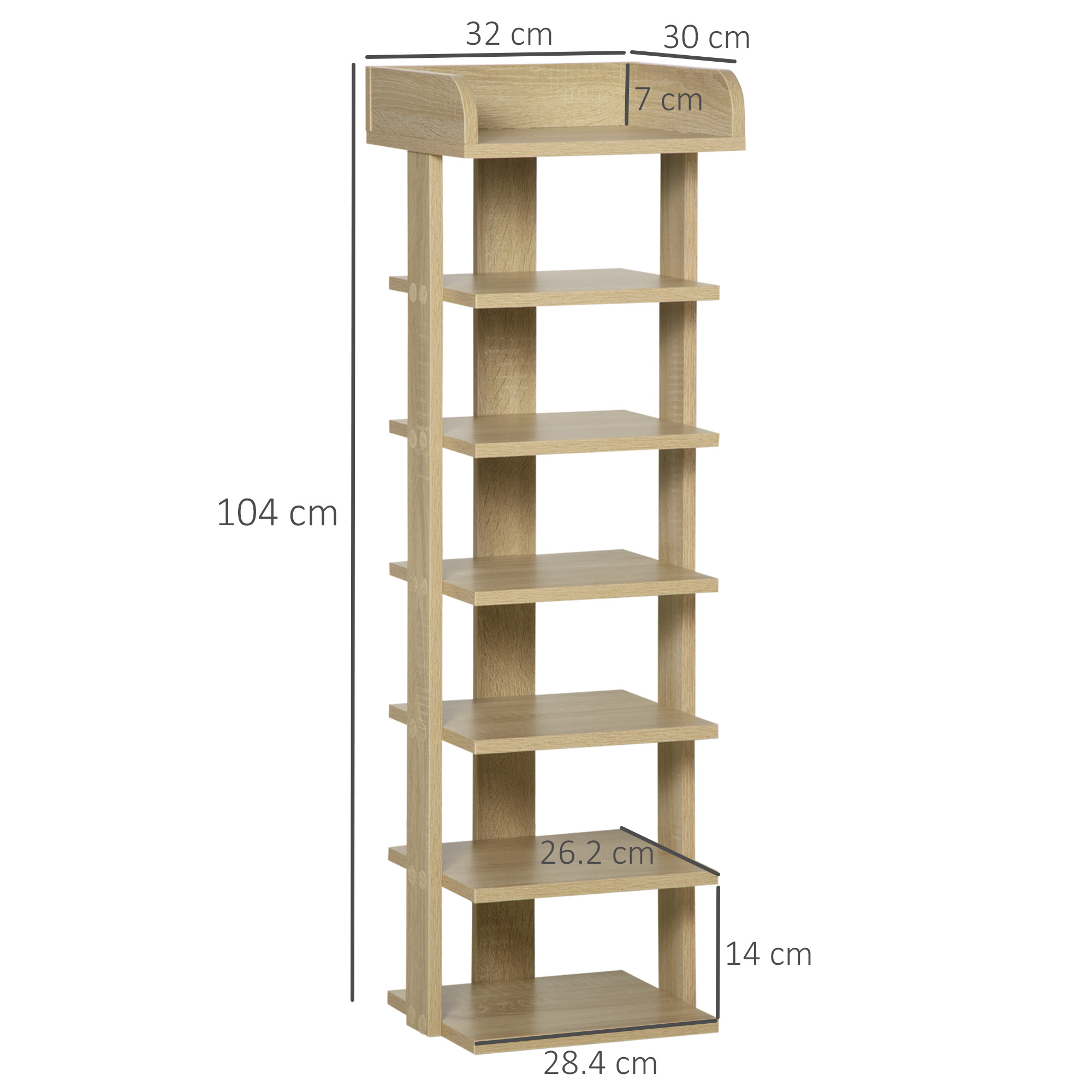 It's time to organize your shoes now with our HOMCOM shoe rack. The simple and modern look with oak colour finish will fit any decor of your room. You can put shoes, keys, photo albums in shelves and top surface. Open design make you easily find your shoes at once. Good air circulating avoid bad smell. Can be used as a storage rack in living room, bedroom, entryway, etc. Keep your shoes and accessories neatly tucked away within this spacious shoe storage rack.