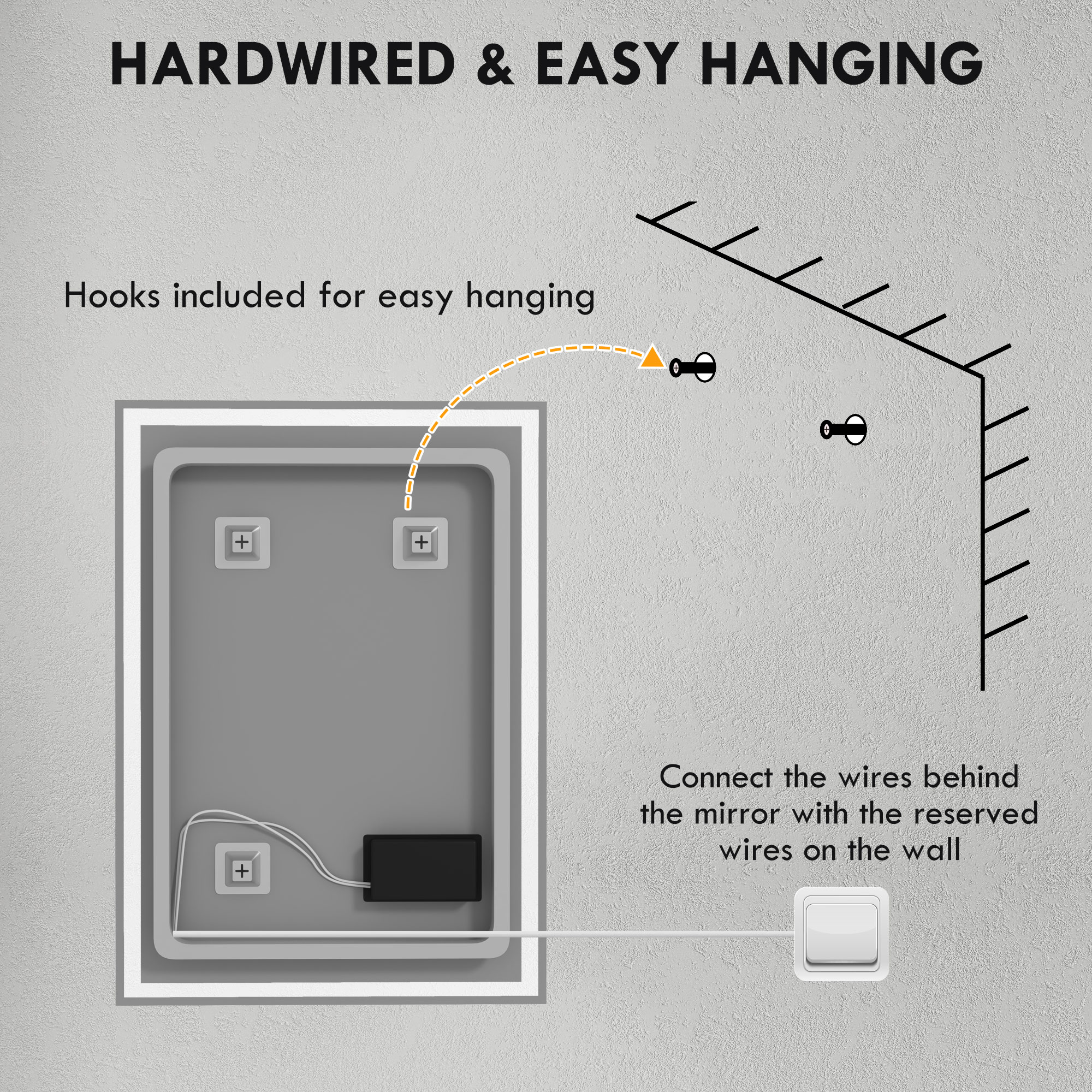 - IP44 rated: LED bathroom mirror is suitable in moisture environments