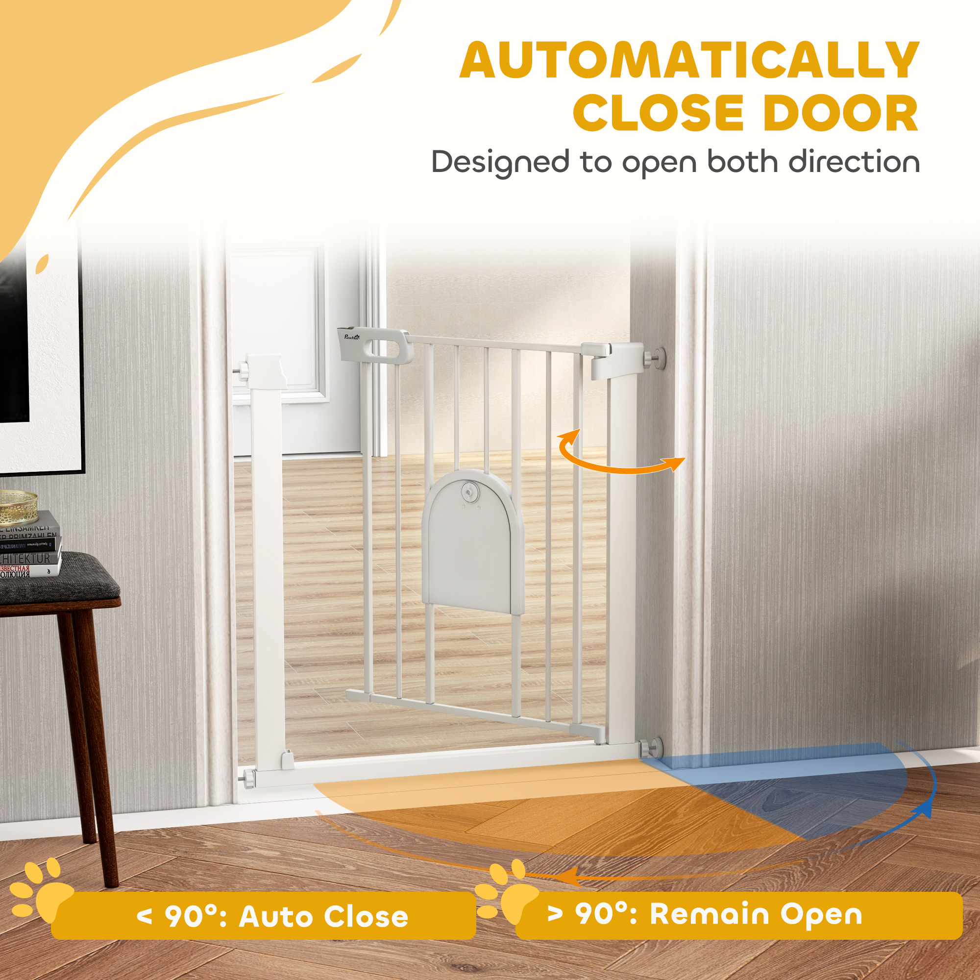 Keep pets away from rooms when required with this Pawhut pet stair gate. Made from sprayed steel with lead-free treated surface for strength and safety. Ranging from 75 cm to 82 cm wide, allowing it to fit into different sized spaces with ease. Slide and lift, the handle is easy to open, allowing you to pass through quickly without your pet escaping for security. Double locking mechanism ensures your pet secured in a place to provide the maximum safety.