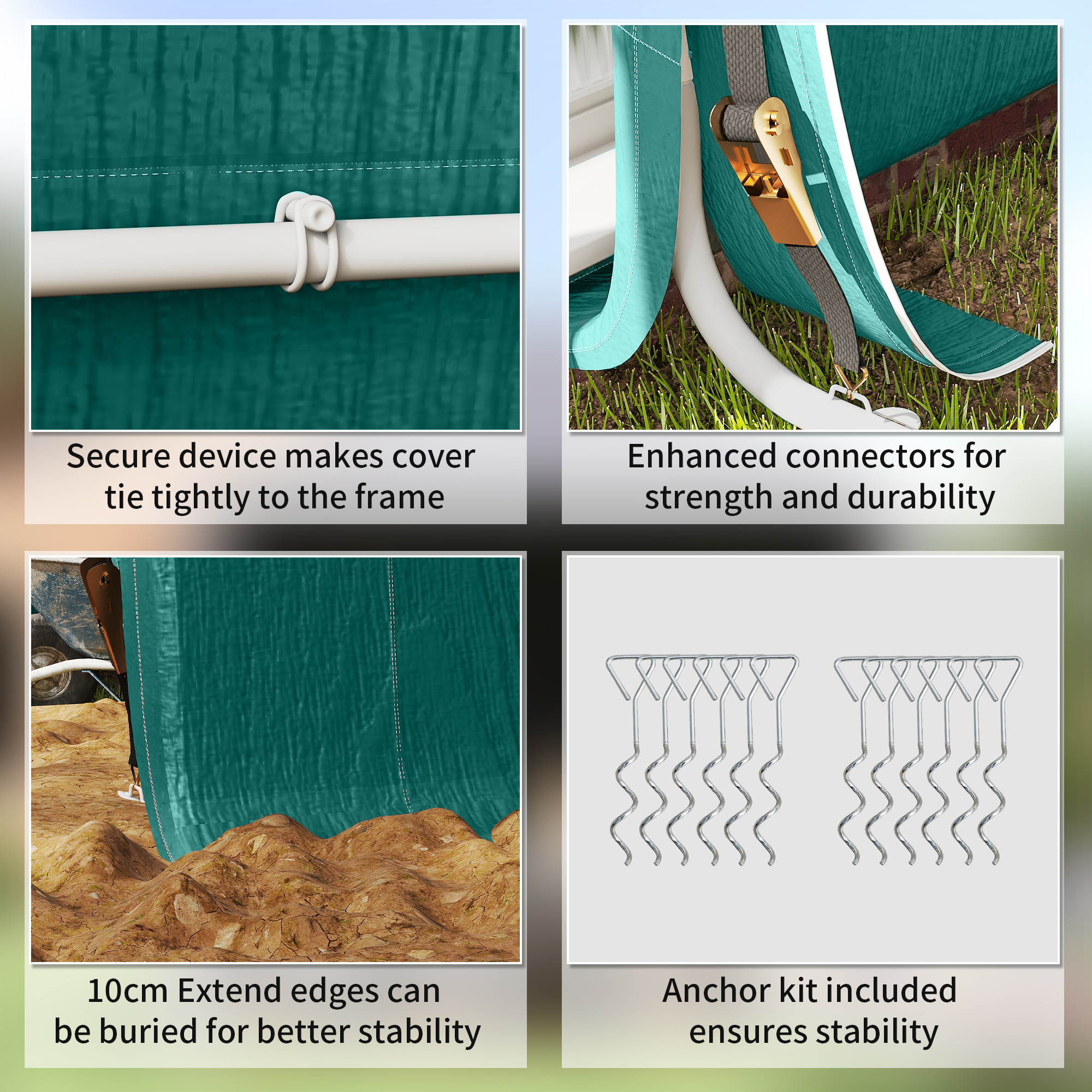Garden storage shed just got serious. Go for this Outsunny 8 x 6. 5ft outdoor storage tent. A metal frame for a strong core structure, with ground pegs included to pin to the ground for extra stability. It comes with a plastic fabric cover, keeping inside sheltered from light wind and rain. The front and back doors allows easy access in and out. Whatever it is - garden/outdoor equipment, bikes and more, this outdoor storage shed will keep your items safe.