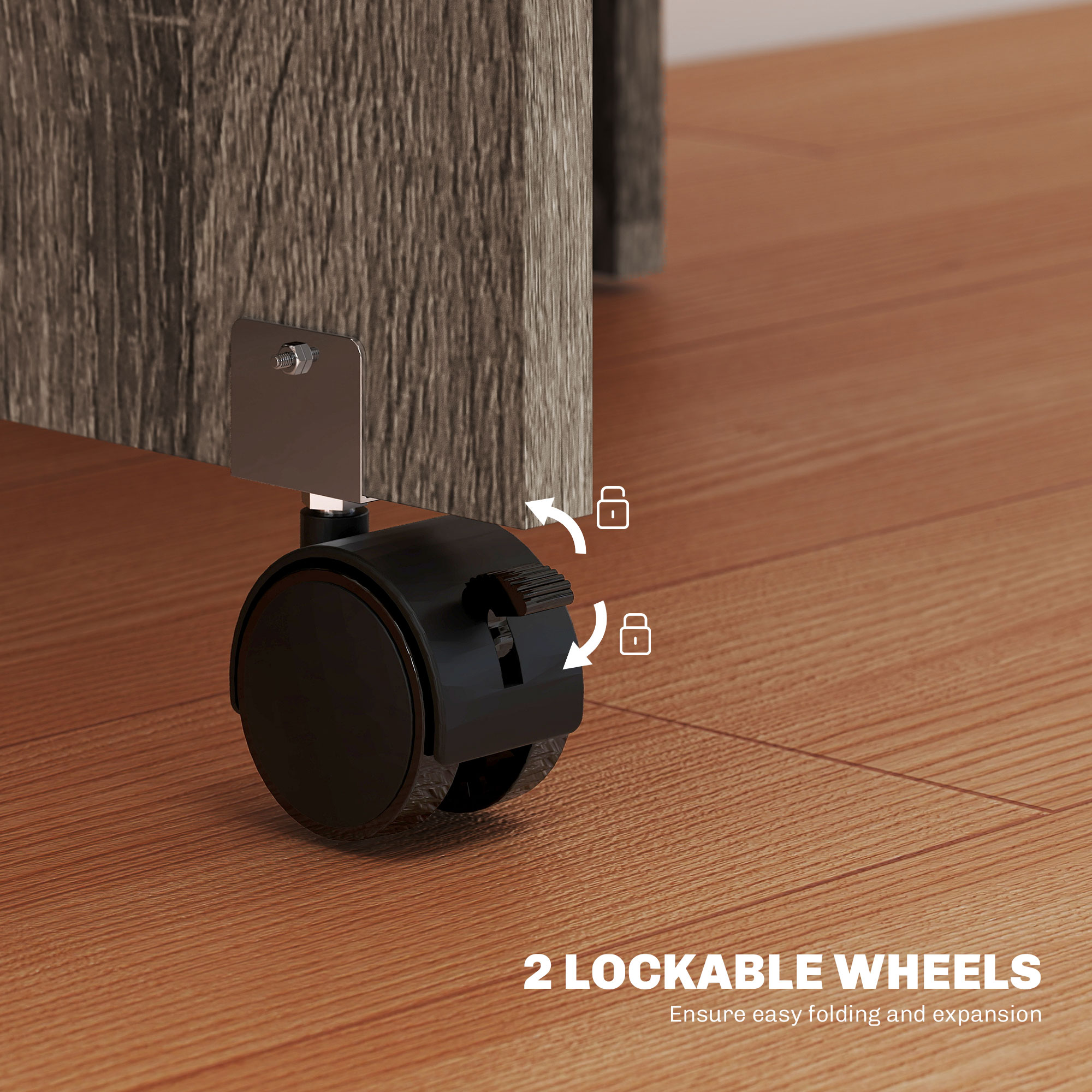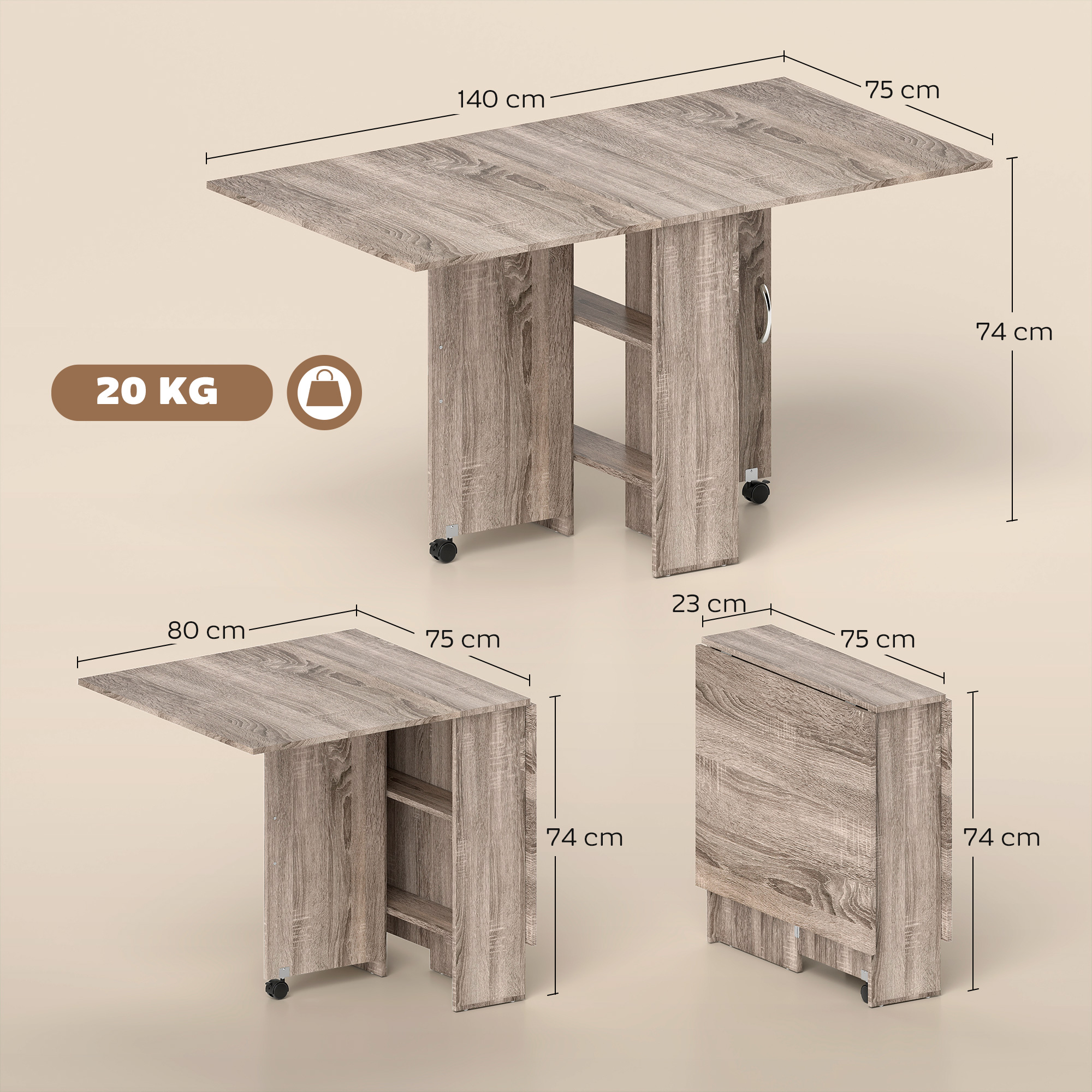 Make large unused tables at home a thing of the past. Choose this HOMCOM drop leaf dining table for extending surface space, whenever you need it. Both sides lift up and drop down super easily. Inside there are two shelves for close by and discreet storage - easy to keep things close to you. Side panels are complete with braked wheels for expanding and folding the kitchen table conveniently.