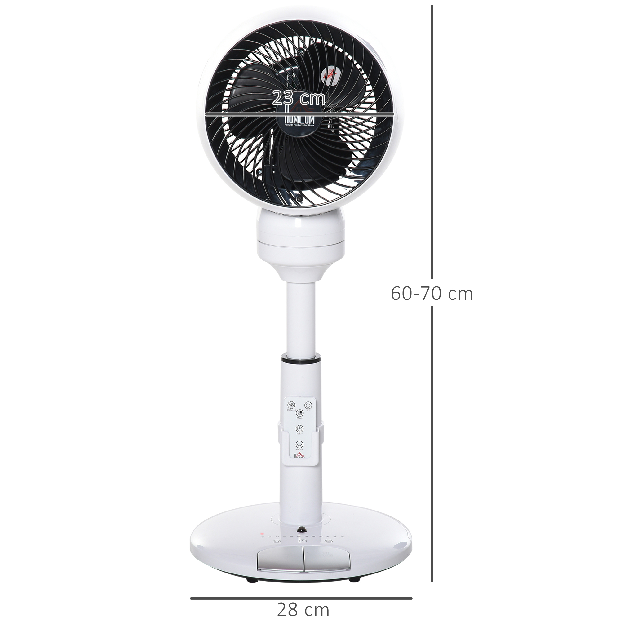 Stay comfortably cool during those hot summer afternoons and nights with this fan for bedroom from HOMCOM. It is easy to use and suitable for home and office use. The electric fan features three variable speed settings and modes for personalised comfort. The 70° oscillation, 90° vertical tilt and 360° rotation allow you to direct air to a specific point. A maximum seven hour timer is great for night bedroom use. It's finished with a carry handle and also comes with a remote.