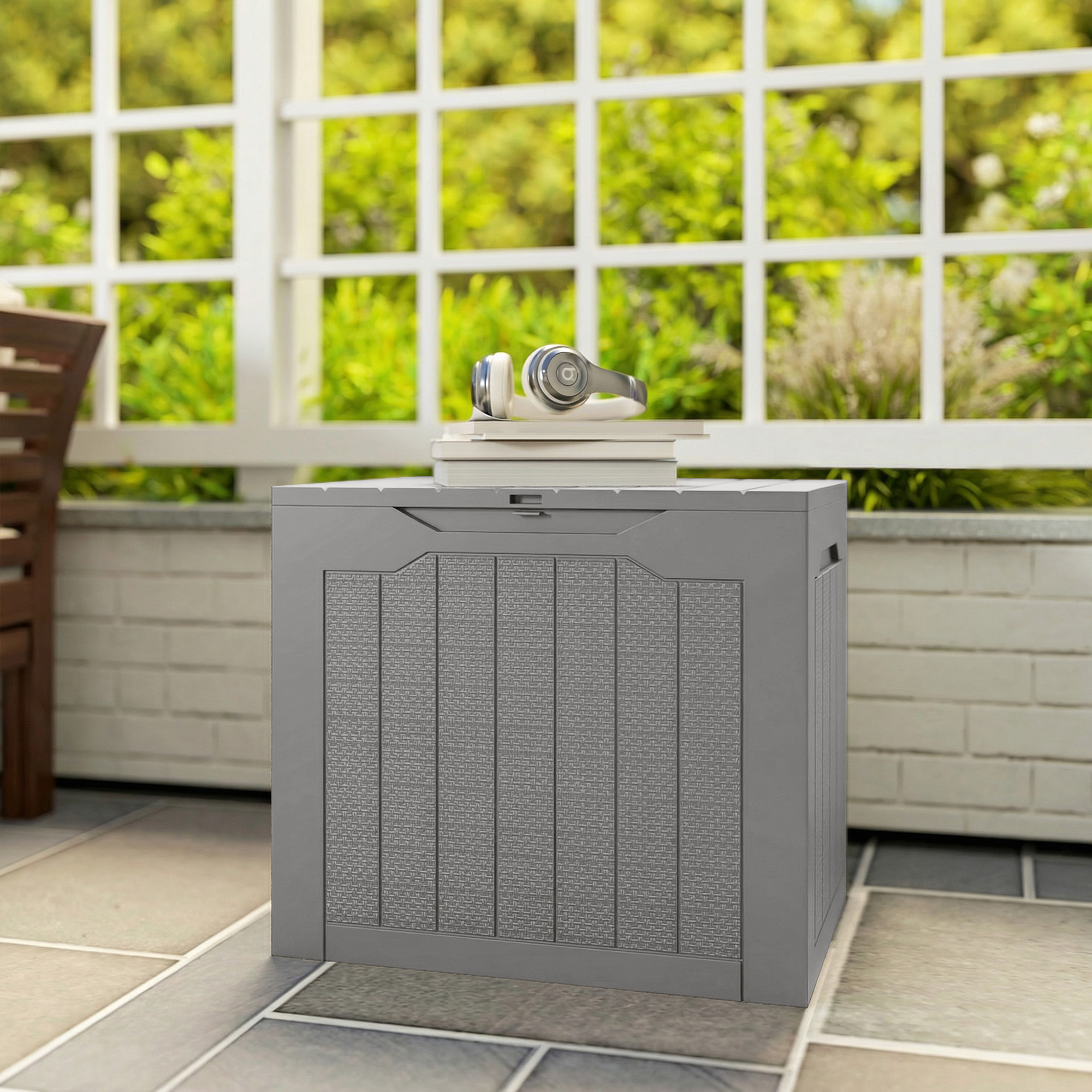 Discover the ease of outdoor tidying with the Outsunny Garden Storage Box. Effortlessly portable with two recessed handles, this waterproof outdoor storage box is secure with a built-in padlock loop. Crafted from weather-resistant polypropylene, it's the smart solution for decluttering your garden or patio space. Great for storing all your garden accessories and tools safely.