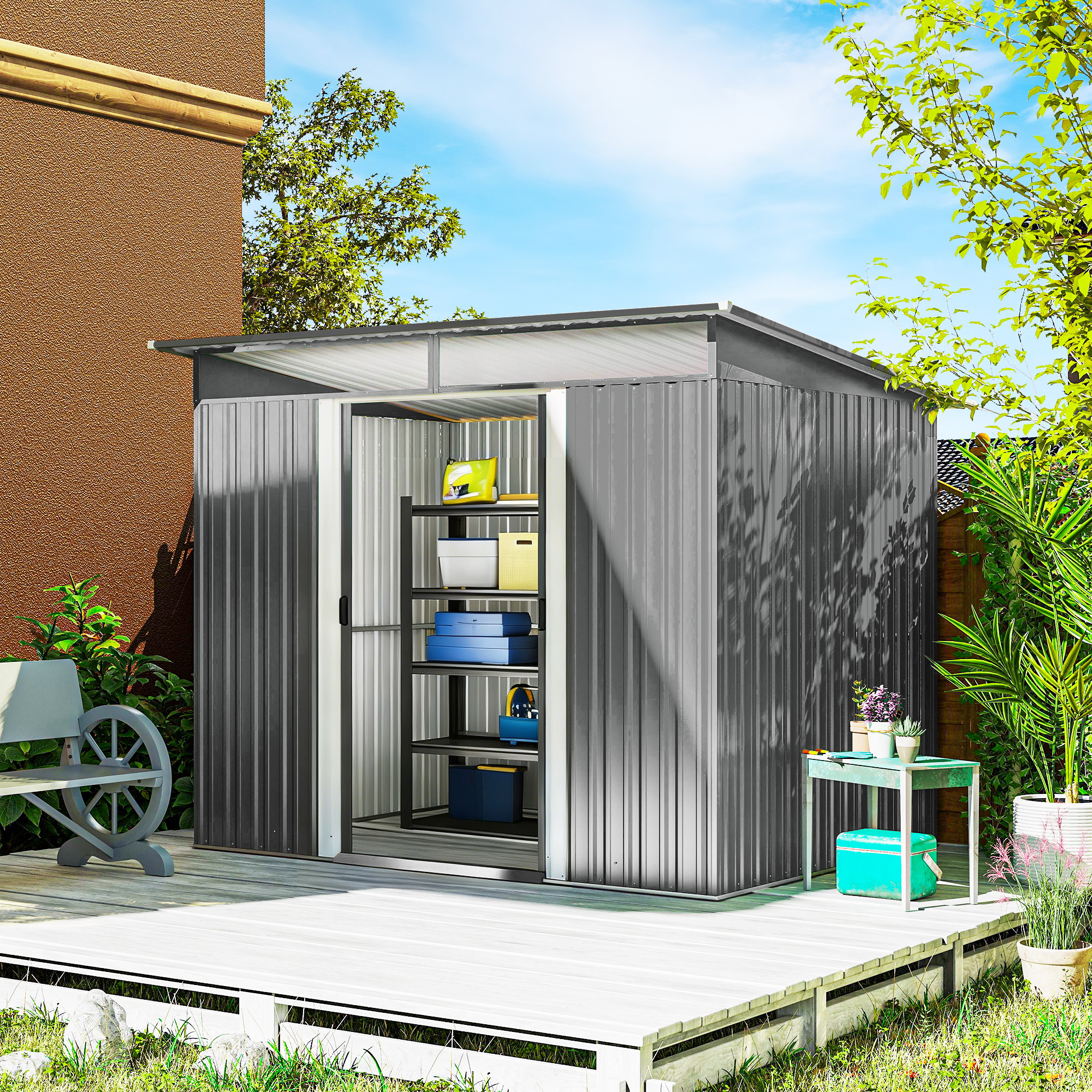 Are you looking to keep your garden in tip-top shape? This metal storage shed from Outsunny is a great solution. Its solid steel material ensures it's built to last, while the double doors provide easy access. Plus, the PC boards above the doors offer better lighting. Whether you need more storage space for your gardening tools or want to keep your outdoor area organised, this metal shed is great.