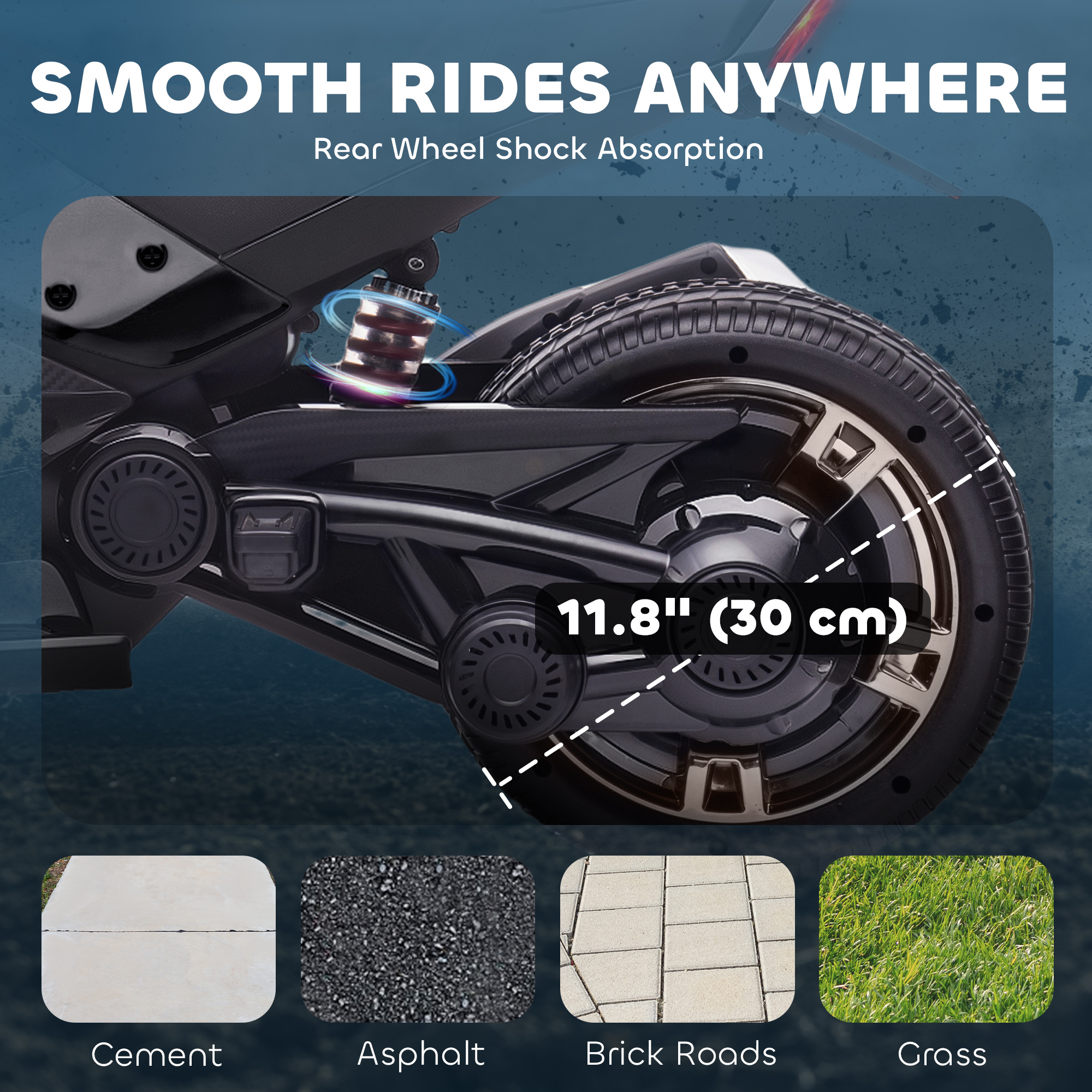 Adventures start with the AIYAPLAY kids electric ride on ATV – a cool reverse trike design that makes kids feel like real explorers. Two 12V motors and suspension keep rides smooth at 3–5km/h. Built-in USB lets them play their favourite songs, while front and rear LED lights light the way for added fun and realism. It's a ride made for excitement, confidence and imagination.