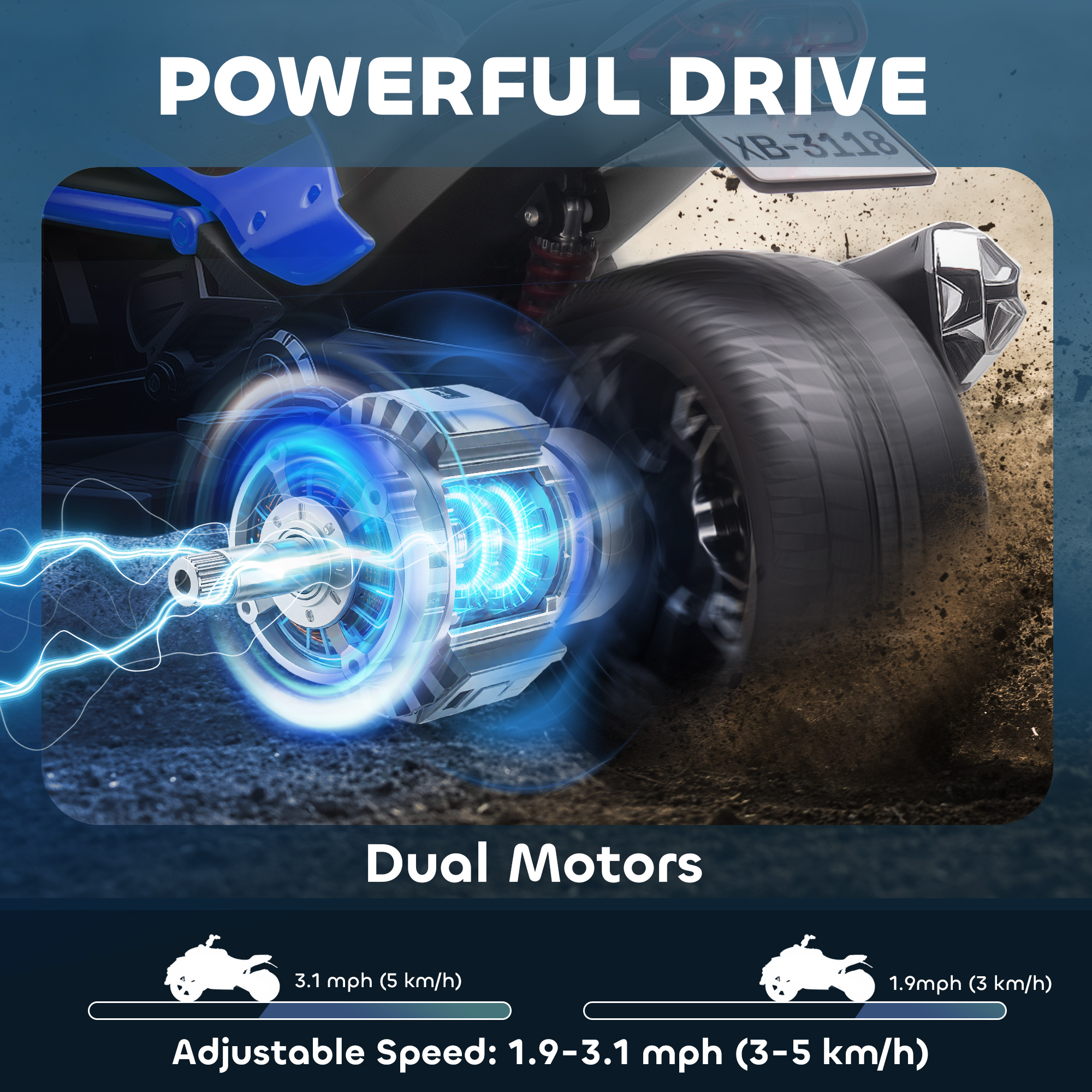 Adventures start with the AIYAPLAY kids electric ride on ATV – a cool reverse trike design that makes kids feel like real explorers. Two 12V motors and suspension keep rides smooth at 3–5km/h. Built-in USB lets them play their favourite songs, while front and rear LED lights light the way for added fun and realism. It's a ride made for excitement, confidence and imagination.