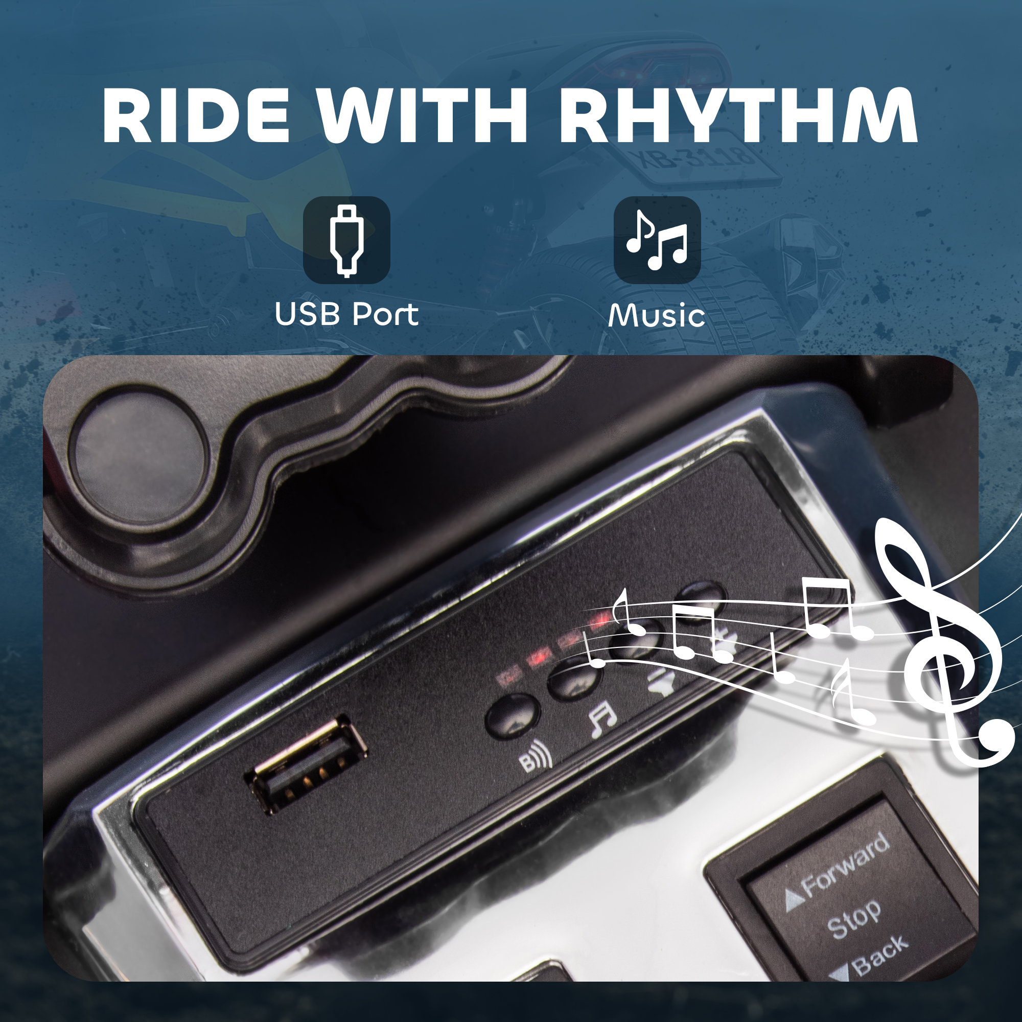 Adventures start with the AIYAPLAY kids electric ride on ATV – a cool reverse trike design that makes kids feel like real explorers. Two 12V motors and suspension keep rides smooth at 3–5km/h. Built-in USB lets them play their favourite songs, while front and rear LED lights light the way for added fun and realism. It's a ride made for excitement, confidence and imagination.