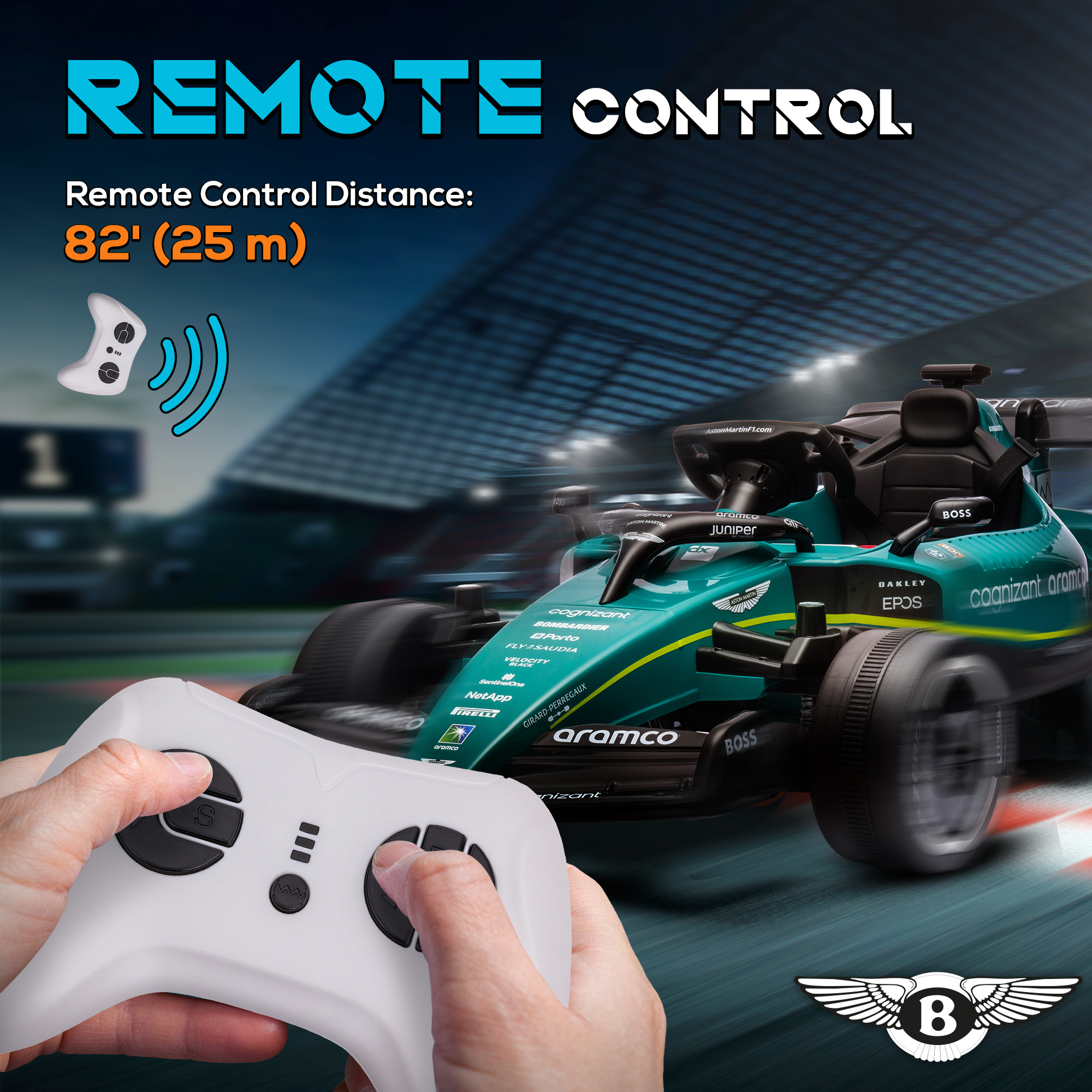 Zoom into fun with the Aston Martin Cognizant Aramco F1 Team AMR23 Licensed 12V go kart!