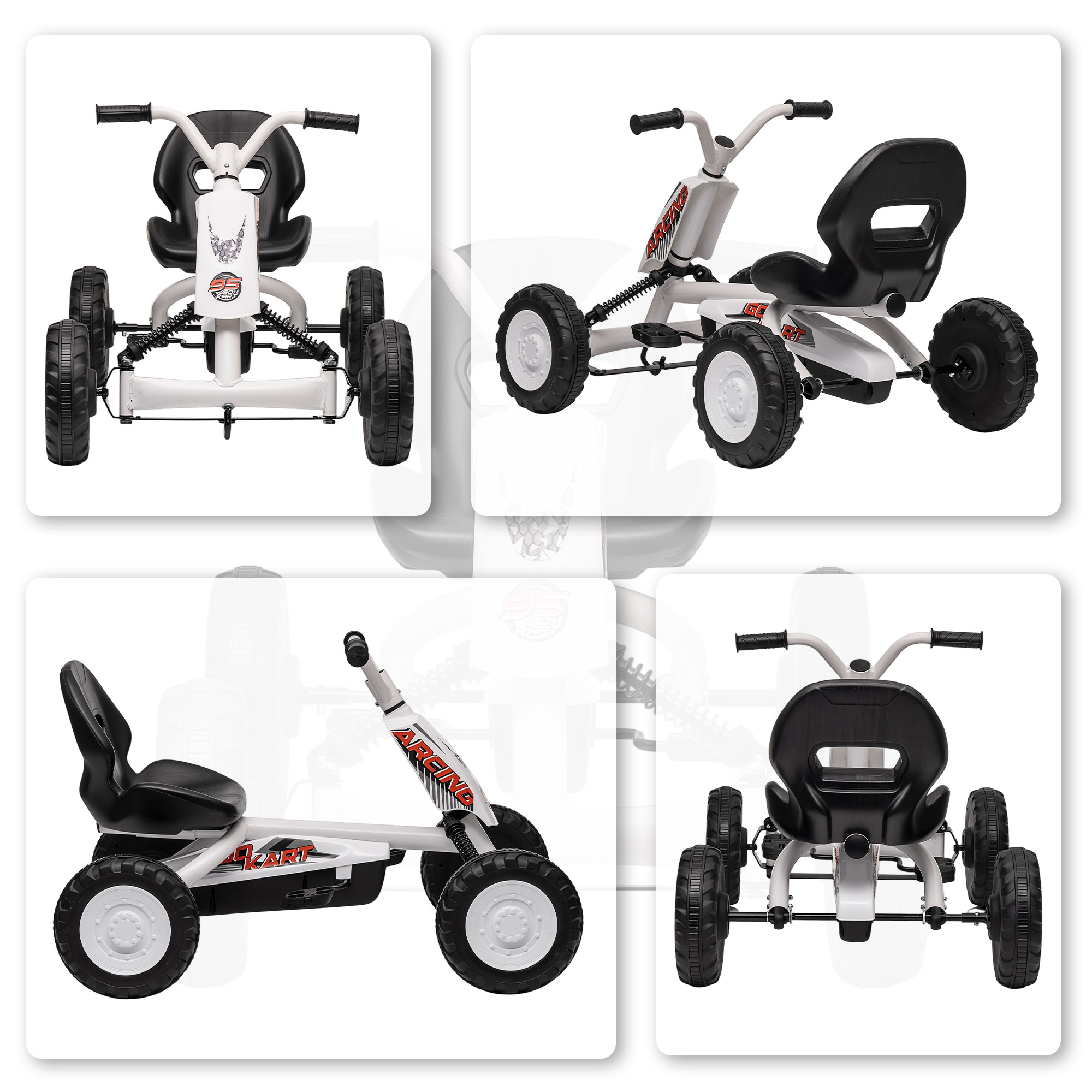 Its low-to-the-ground design provides a stable base and enhanced control, allowing young racers to turn corners with precision. Featuring a sporty, race car-inspired design, this go-kart lets kids feel like real race drivers, making playtime extra special and creating unforgettable memories.