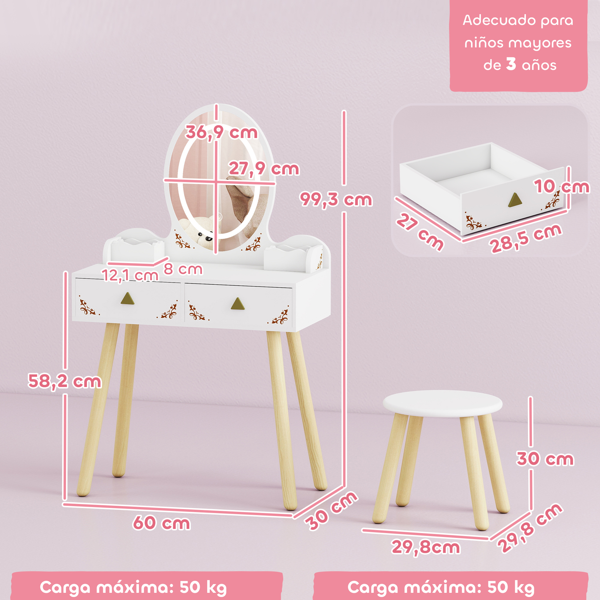 Package Includes: - 1 x Kids dressing table
