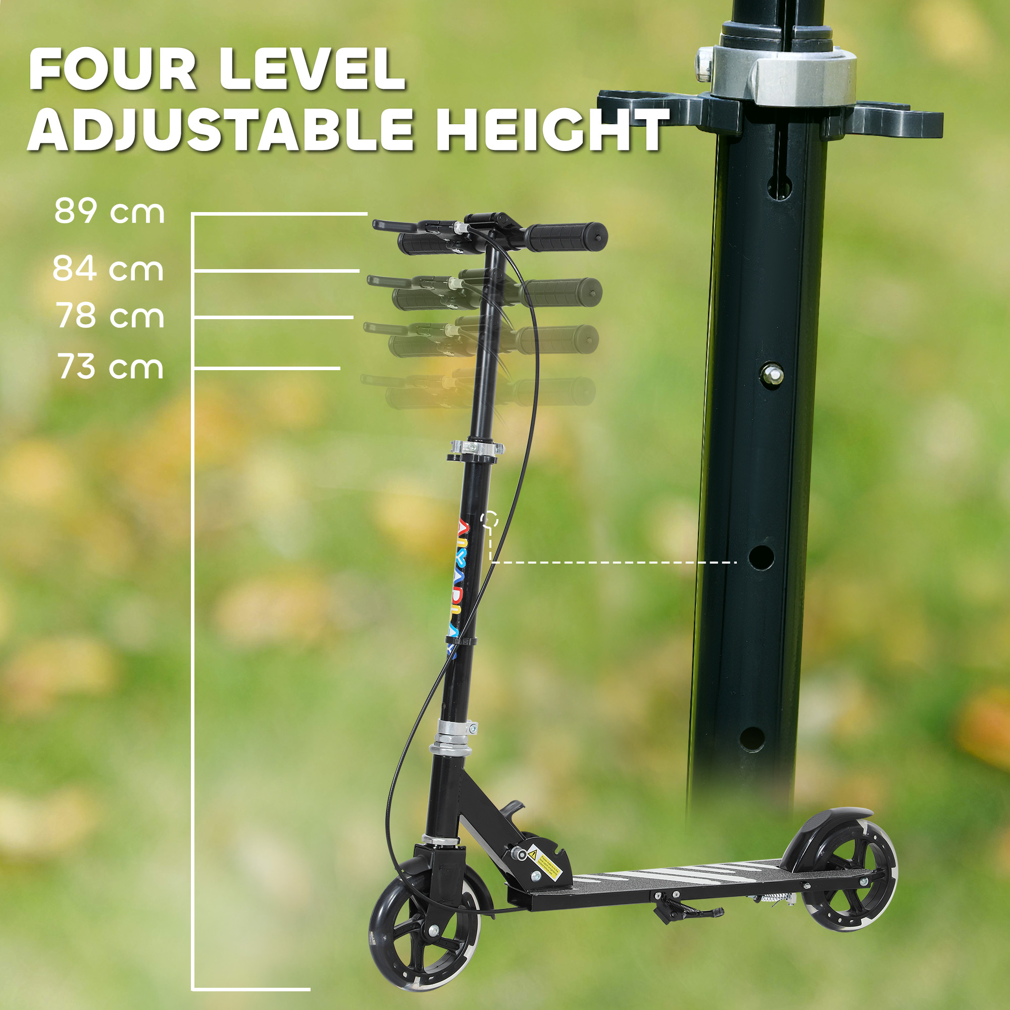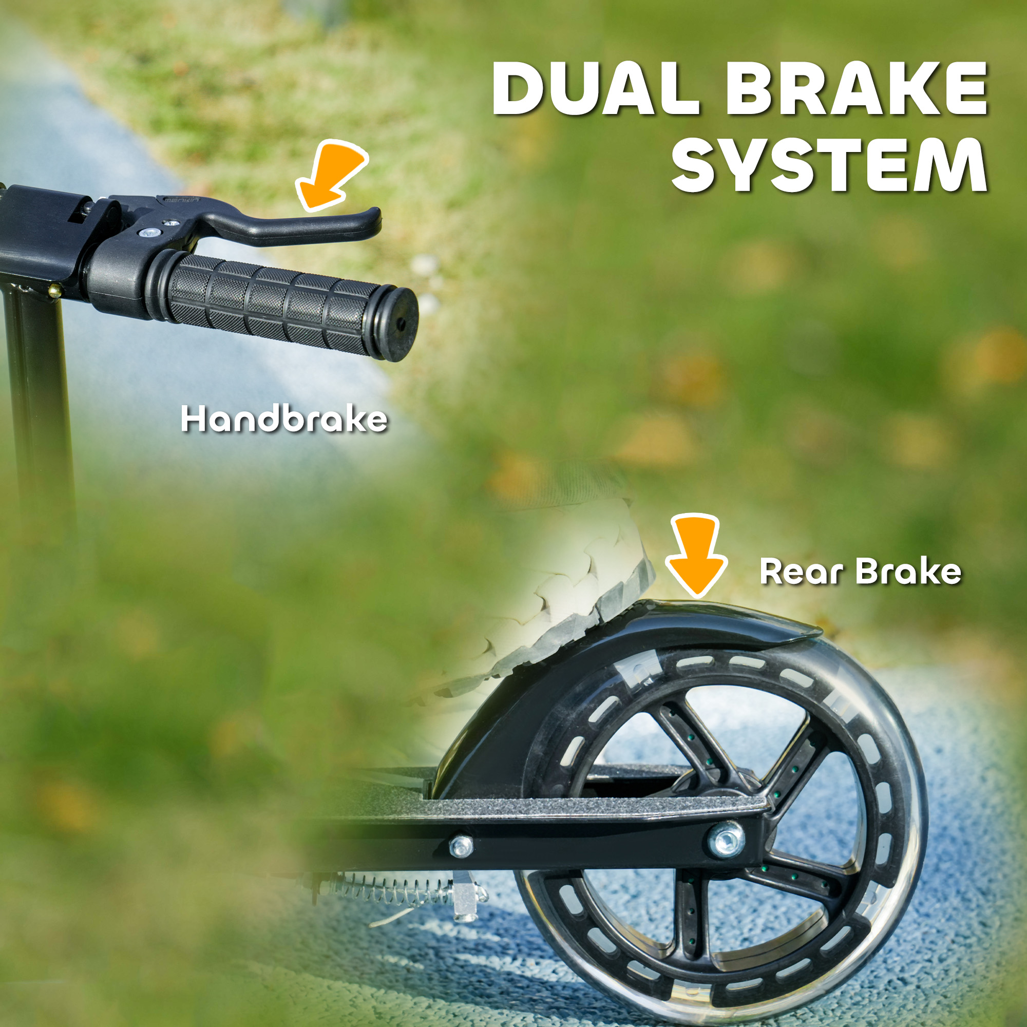 Suitable for ages 3-8 years, this scooter easily adjusts from 73-89cm to grow with your child. The solid metal frame supports up to 50kg safely. With rear and handbrakes, stopping is quick and easy. Watch the wheels light up brilliantly as they scoot – no batteries required!