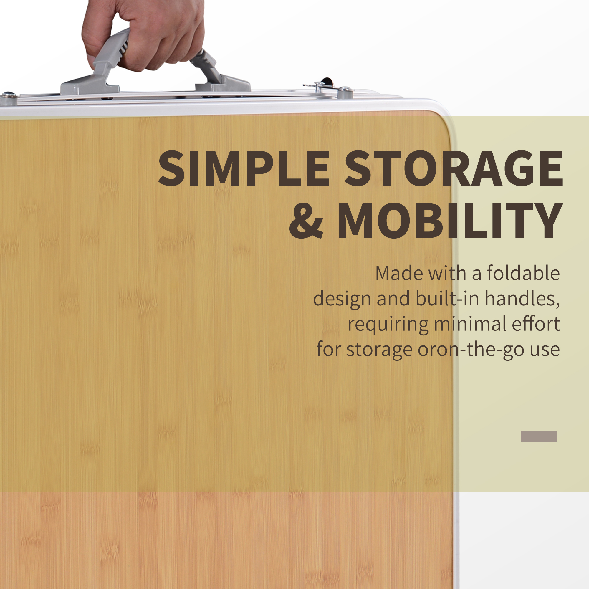 Ensure you have the perfect dining spot every time during your camping trips, picnics, festivals and other outdoors with this wonderful table from Outsunny. Foldable in design for easy portability, as well as adjustable to two different heights, it is made using an aluminium frame with four legs, making it lightweight, suitable for outdoor use and reliable, handling a weight up to 30kg – great for eating with your family and friends. With a main tabletop, which is covered an oak coloured MDF top for easy maintenance, it is finished with a small pull-out side table to provide extra holding/dining room if required. Folds into itself – no carry bag case required.