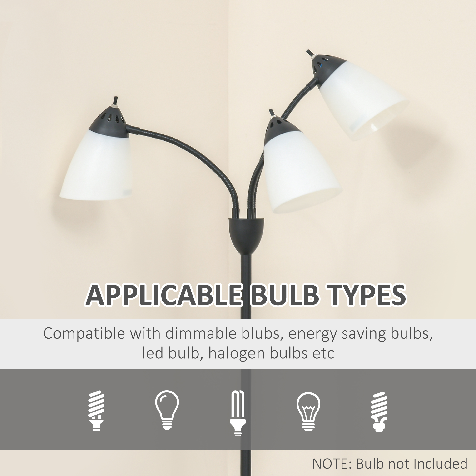Create the atmosphere you want with this HOMCOM floor lamp. The tall tree design comes with three opaque shades - the fully flexible 360° movement means you can direct the light in any position you desire. Each light can also be turned on and off individually, so you can have your space either bright or dim. Made from steel, the structure is strong, with the heavy round base meaning this home light stands tall and proud, all day and night long.