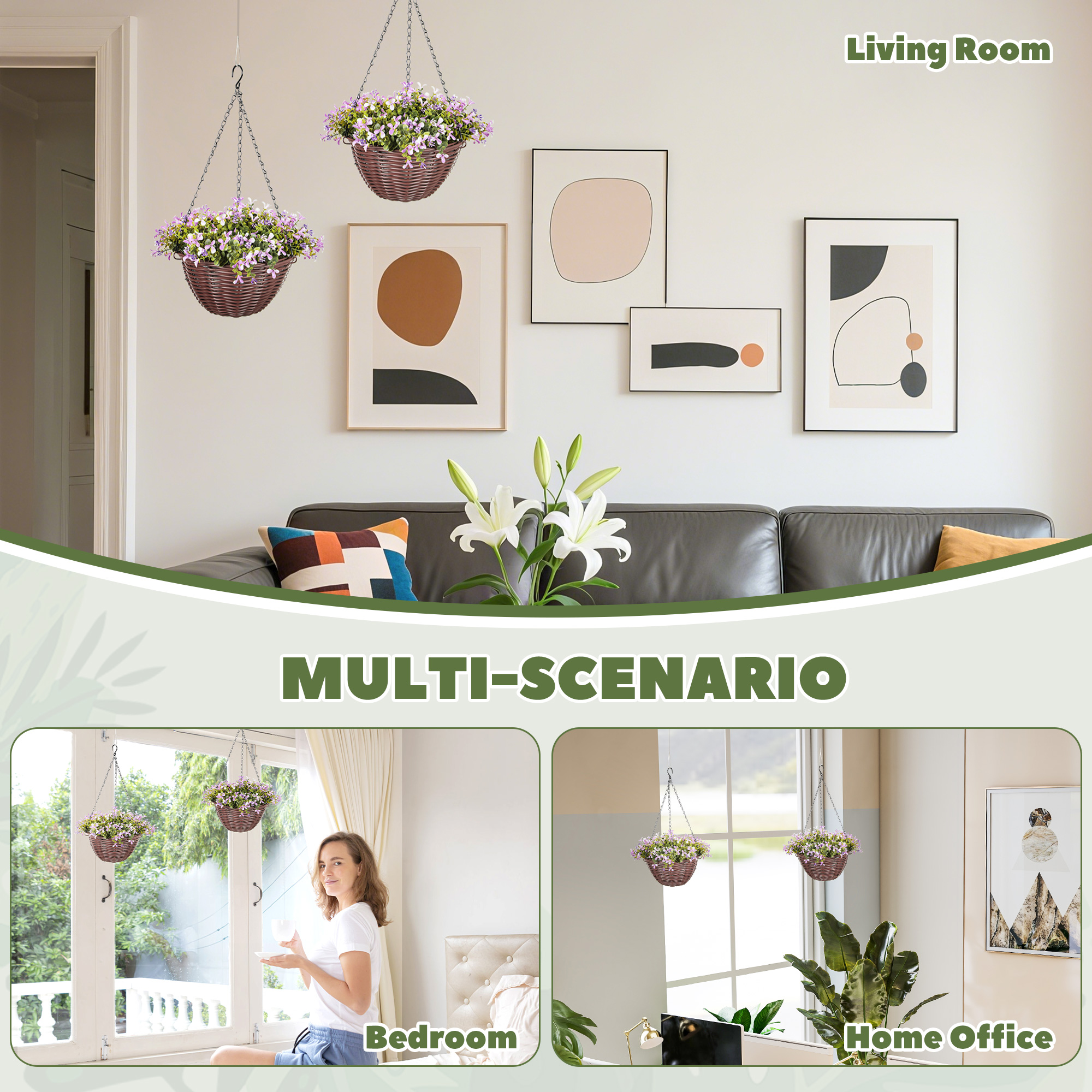 - Hanging baskets suitable for home or office decor