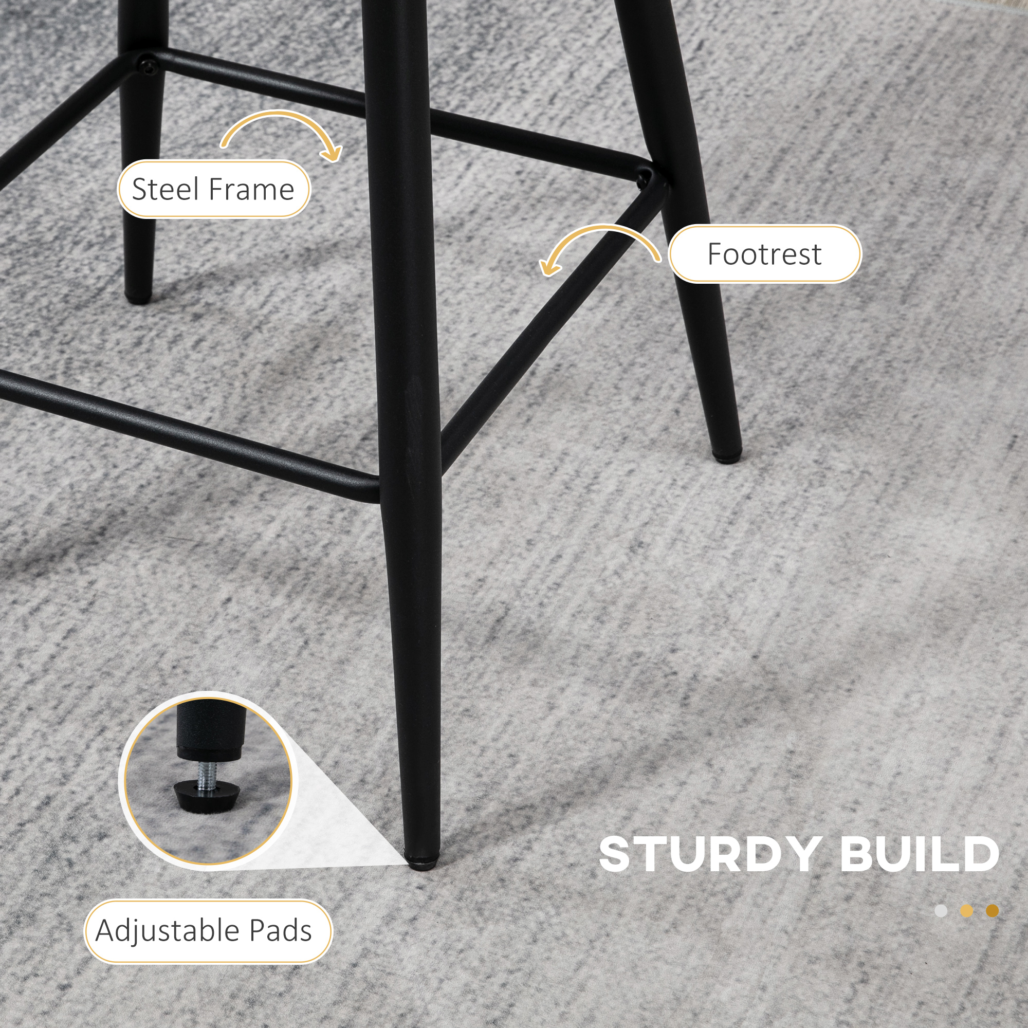 - Solid steel base with adjustable foot pad keeps the island chairs balanced when in use
