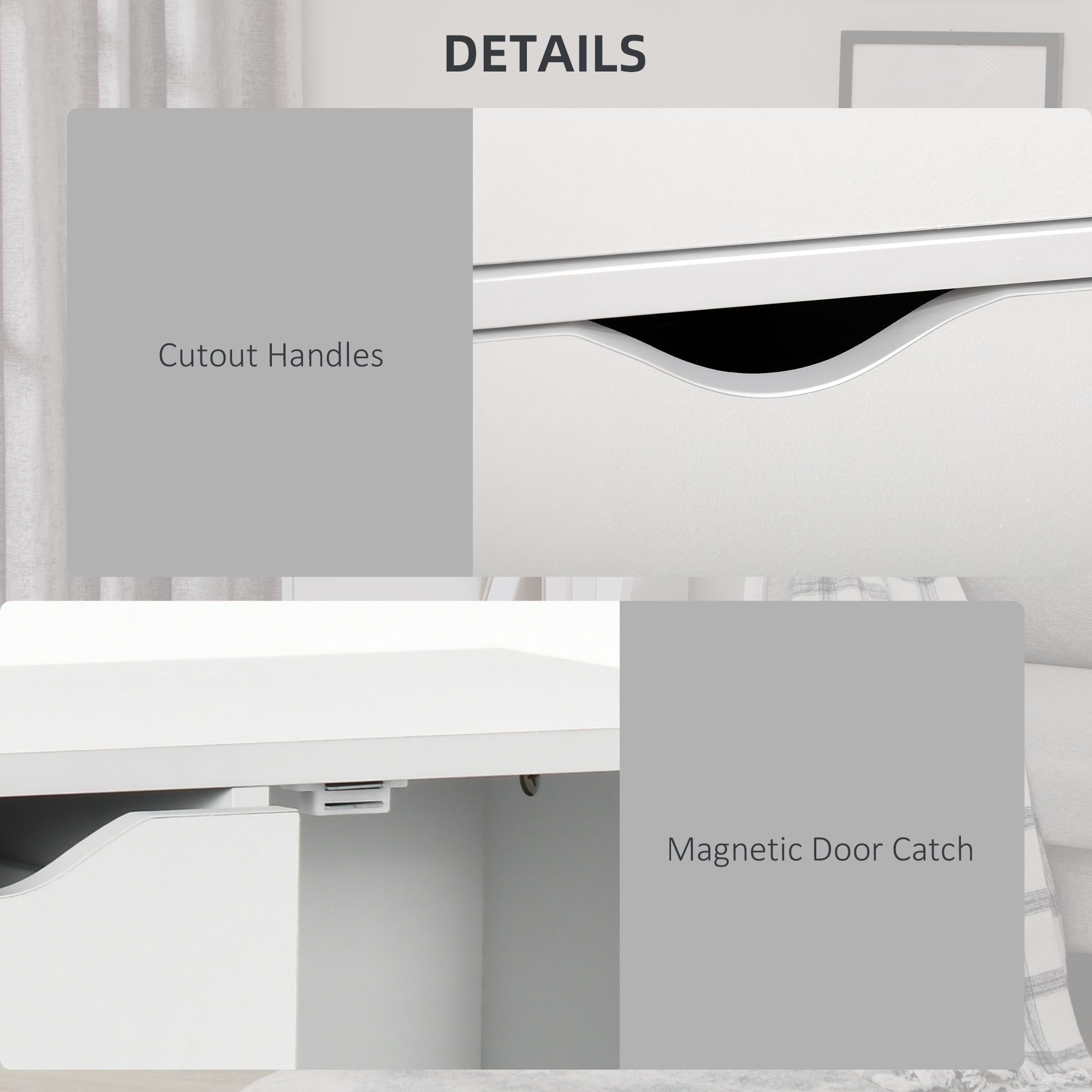 Do you need more bathroom storage space? Of course you do. This HOMCOM bathroom cupboard gives you that extra boost. It comes with four drawers and a two-tier cabinet - room for cosmetics, cleaning products, towels and more. Cut-out handles to open each door easily. Bathroom floor cabinet comes complete with anti-tipping straps to secure to a wall safely.
