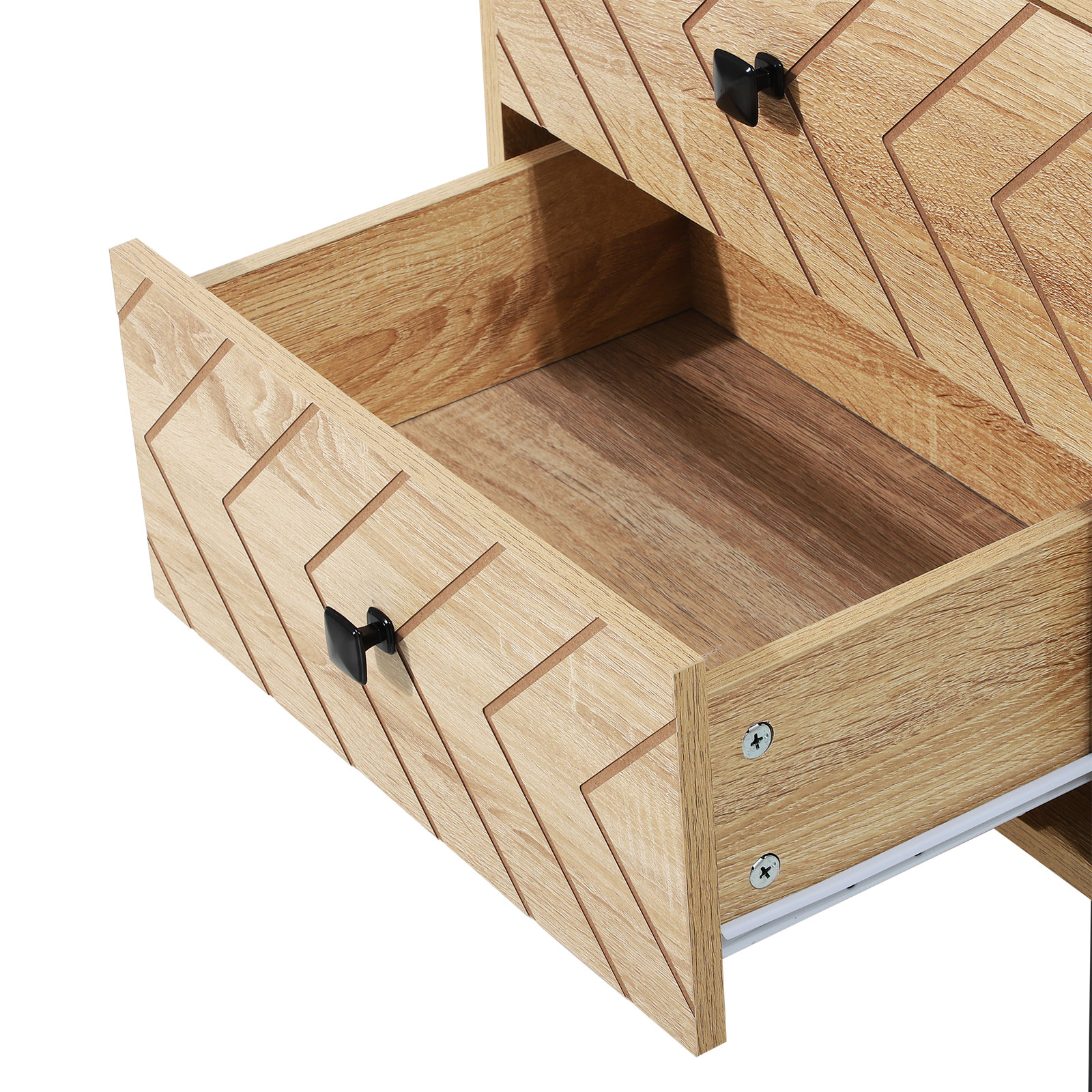 Bring character into your bedroom with this two-draw bedside table from HOMCOM. Built from a blend of MDF and particleboard for long term use, it is covered in a zig-zag design, making it a quirky and unique addition to your furniture you’ll love for years to come. A metal frame sits on the bottom, keeping the unit stable and helping to prevent damage, with anti-slip pads so it doesn’t move easily. It is finished with black handles on the draws, ensuring they are easy to open and close, as well as adding a sophisticated touch to the unit.