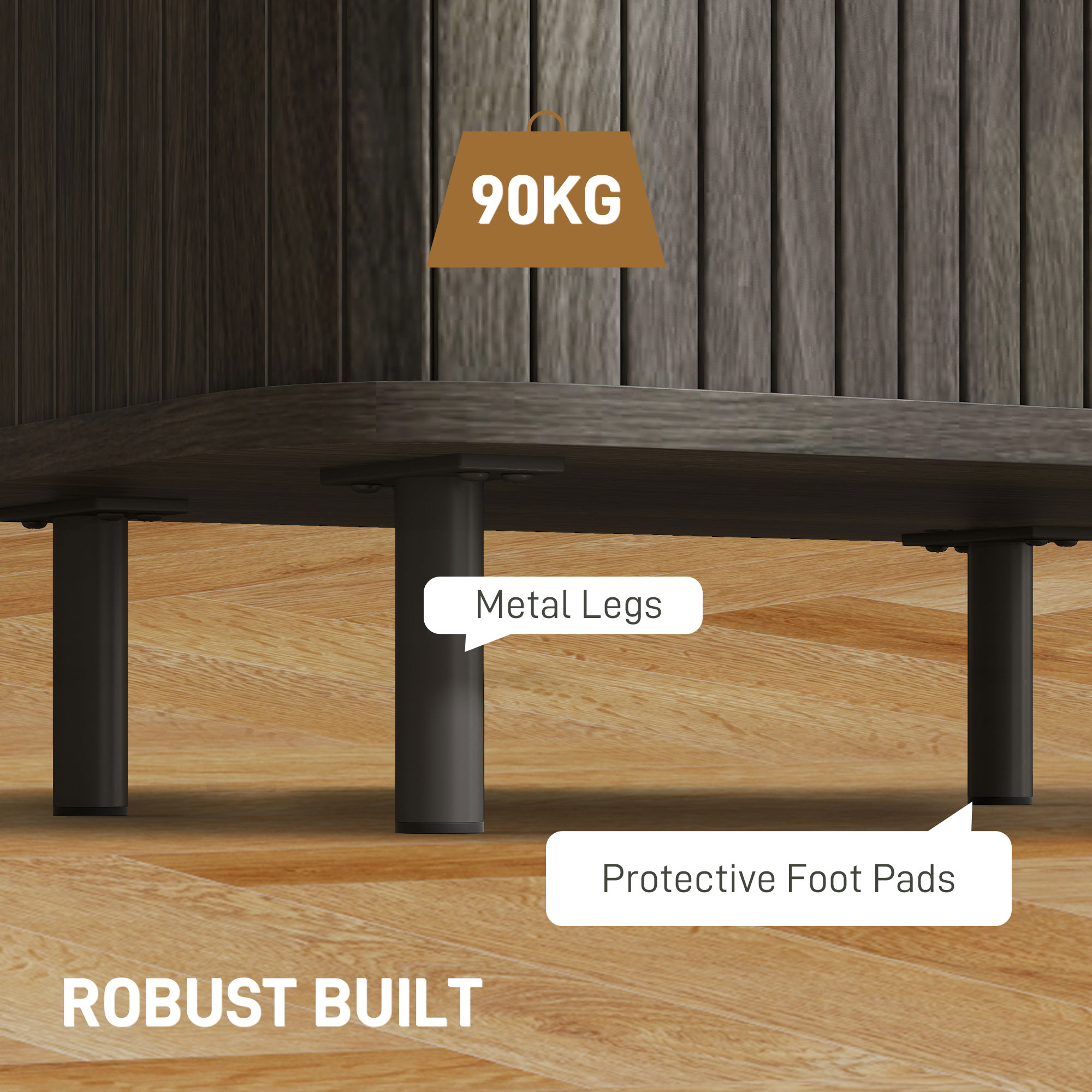 - Particleboard and steel legs support robust 90kg capacity