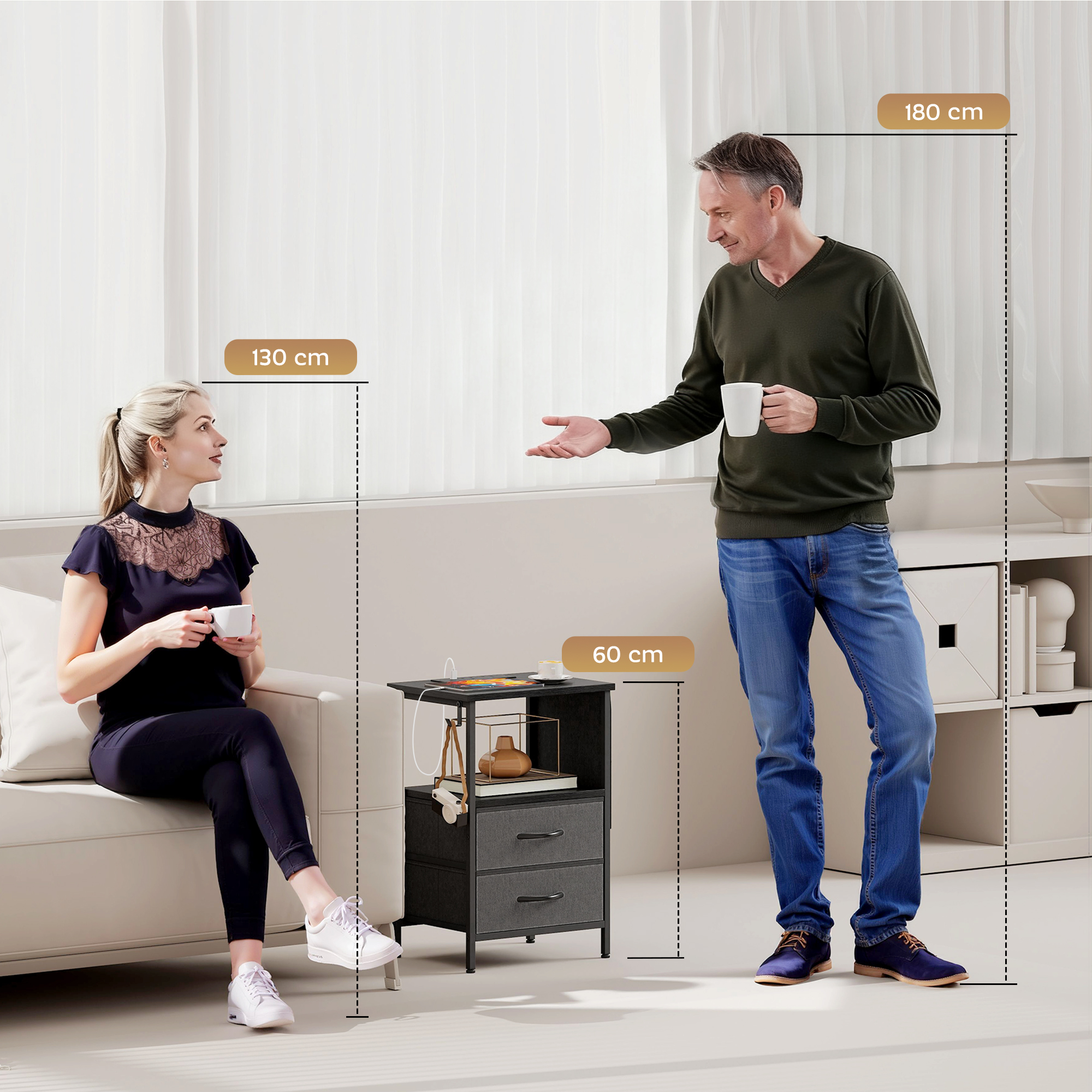 Tangled cords and clutter can disrupt the calm of your evening routine, making it hard to truly relax. Imagine your devices dying overnight and essentials scattered with no home. This HOMCOM side table with storage restores order, integrating power sockets and USB ports to keep you connected. Its five-part storage system, including drawers and a handy side pocket, provides a dedicated place for every item, ensuring your personal space remains a tranquil, organised retreat.