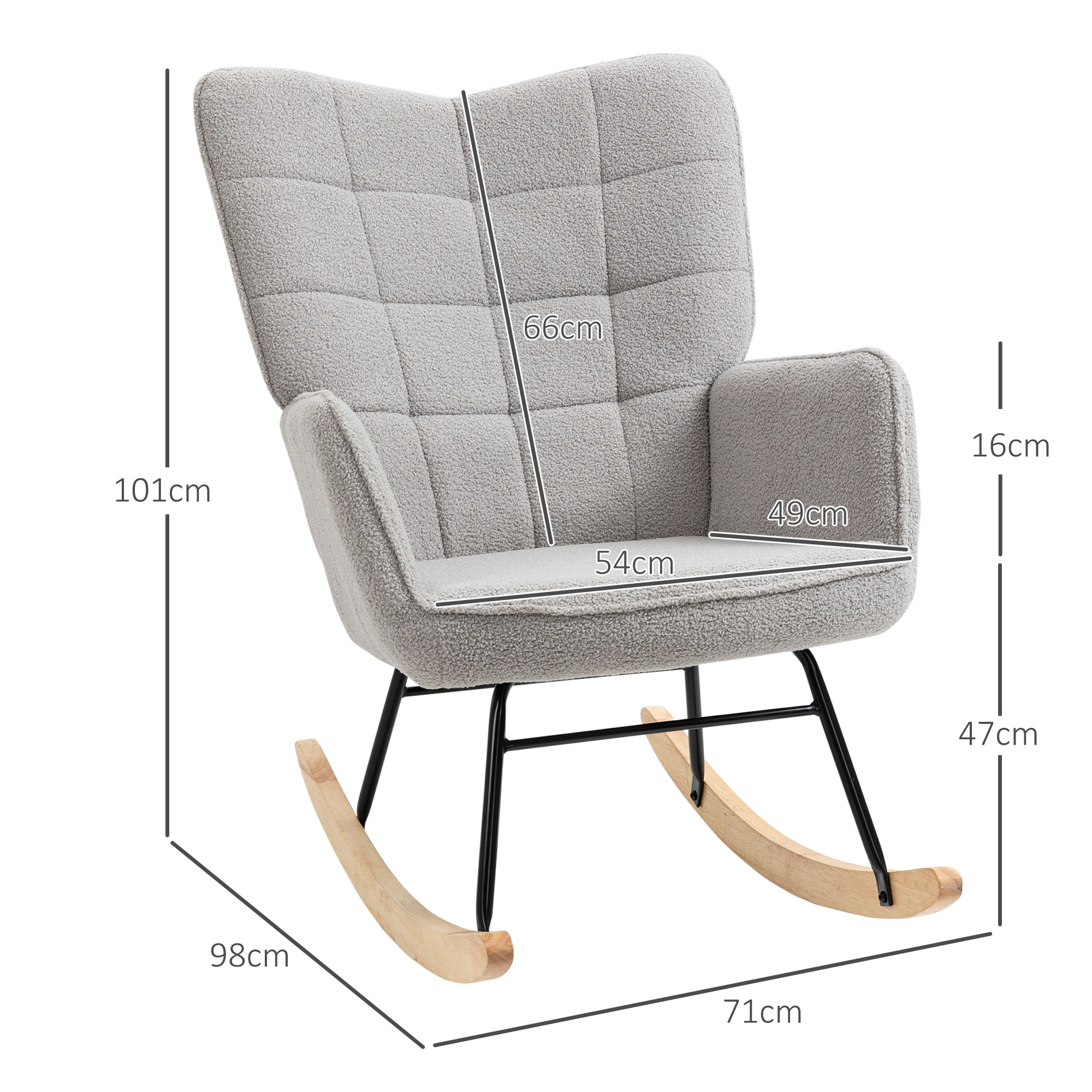 Indulge in serene relaxation with the HOMCOM rocking chair, a perfect addition for who values both style and comfort. After a demanding day, unwind in this spacious wingback chair, designed to complement modern home aesthetics. Its plush padding and high back offer unparalleled support, while the gentle rocking motion soothes away stress. The elegant fleecy upholstery and sleek metal legs ensure it seamlessly fits into any sophisticated setting.