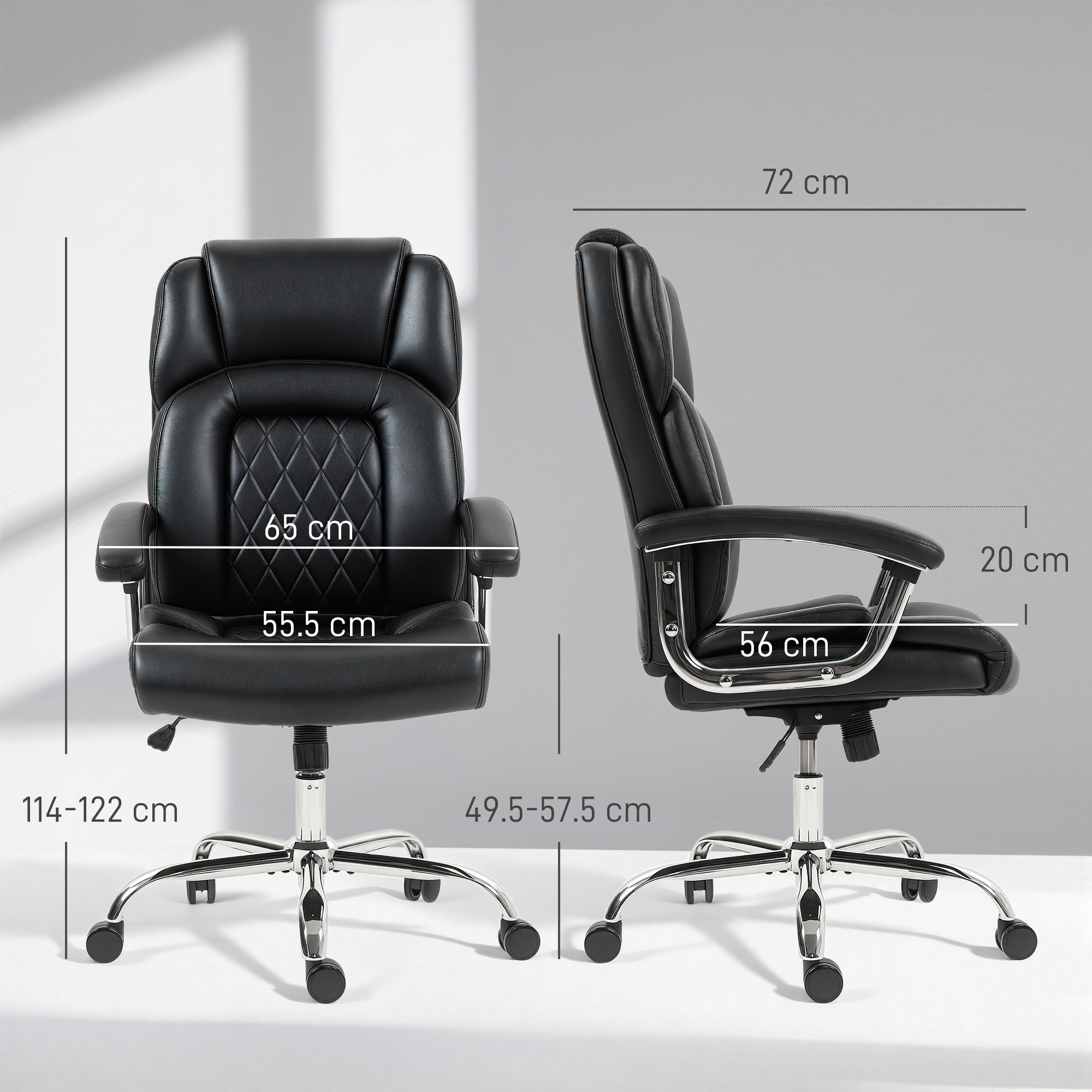 Long workdays in a cramped chair can leave you feeling drained and unsupported. The constant shifting and lack of proper back support make focusing a challenge. This HOMCOM big and tall office chair offers a solution. Its spacious, spring-cushioned seat and high back provide a secure, sofa-like embrace for your entire body. Settle in and experience a computer desk chair designed for enduring comfort and unwavering support through any task.