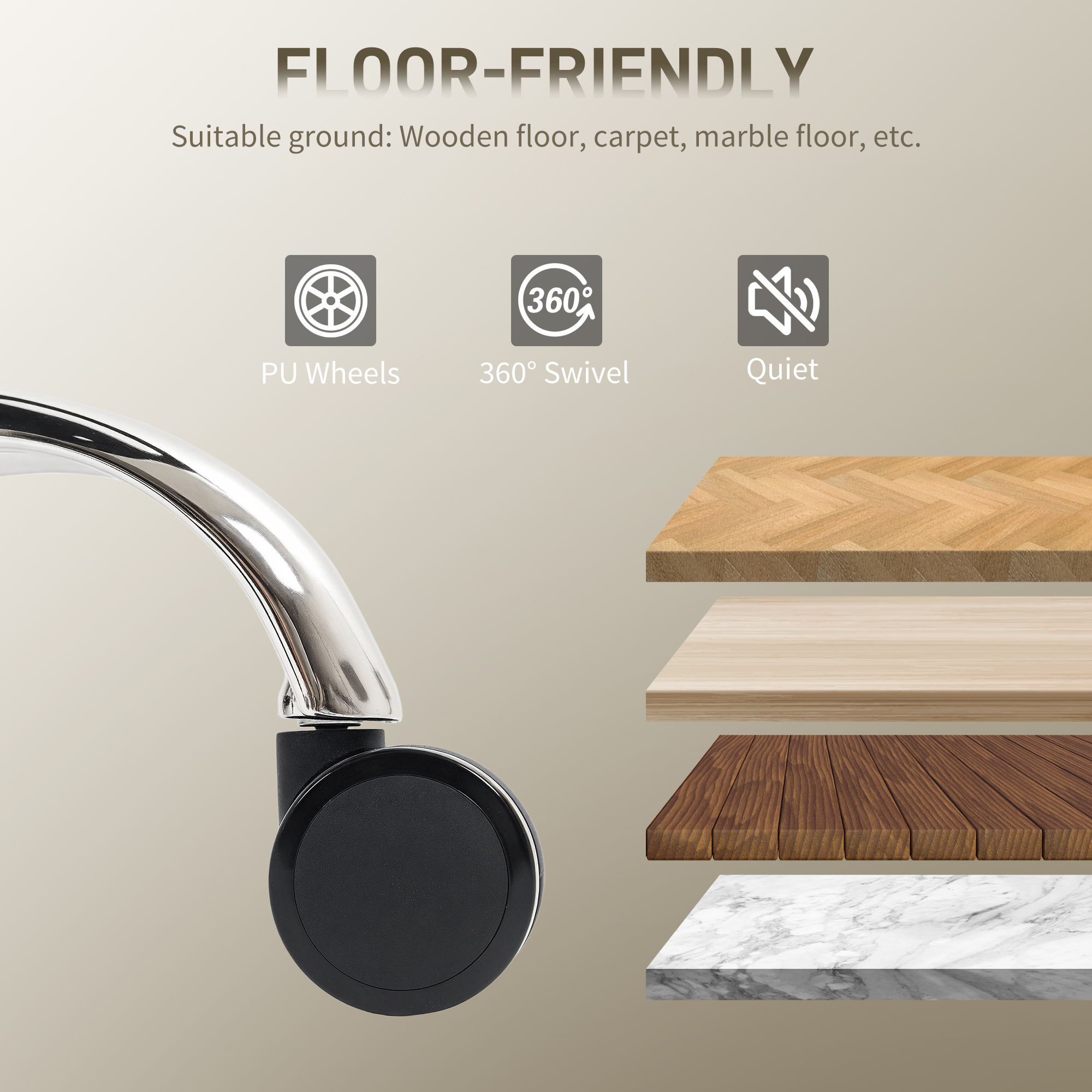 - Large smooth-rolling PU casters move quietly while protecting your floors from scratches