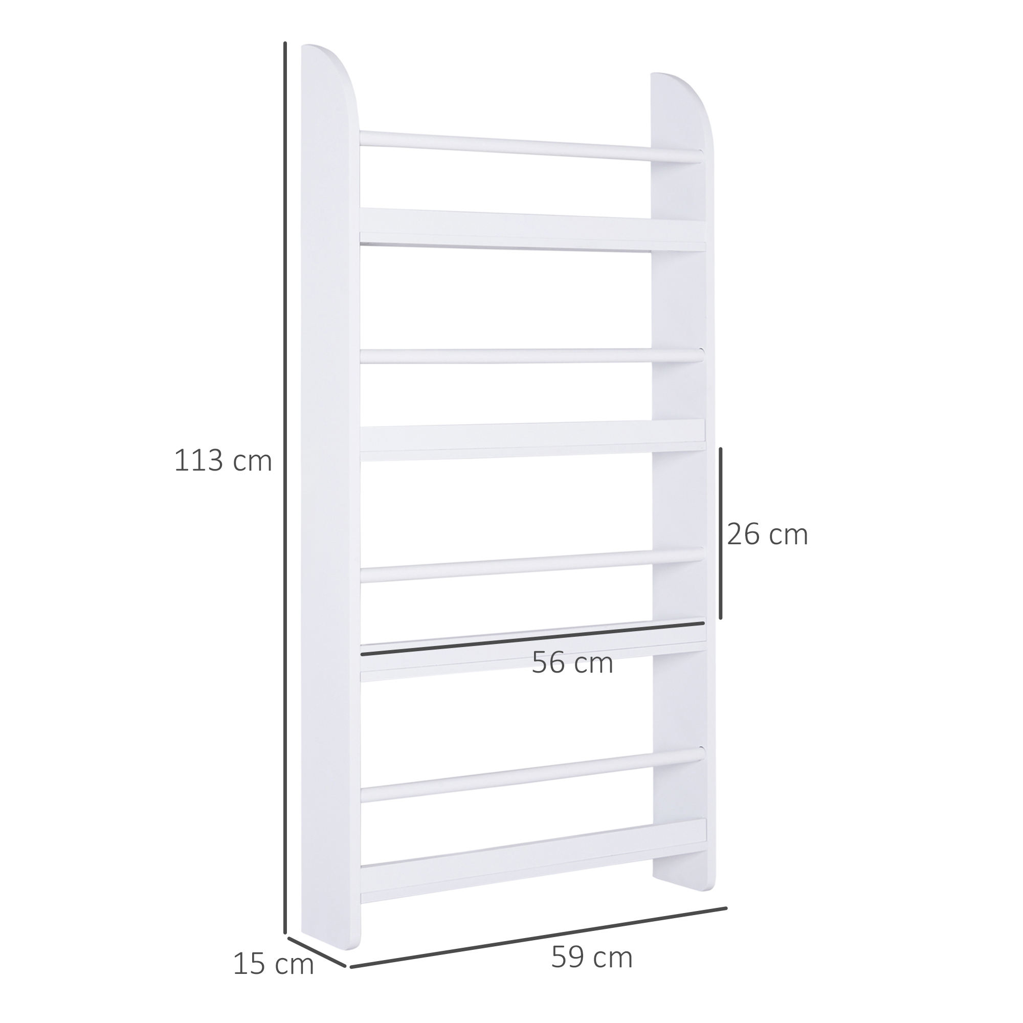 Bring your own unique character to your walls, whilst simultaneously saving floor space in your home with this hanging wall bookshelf from HOMCOM . The water-resistant white paint offers a fresh, timeless look. Crafted from solid wood and MDF for durability, it features four large shelves with double barriers to securely display books, magazines and papers. Easy to clean with a damp cloth. Wall-mounting accessories included.