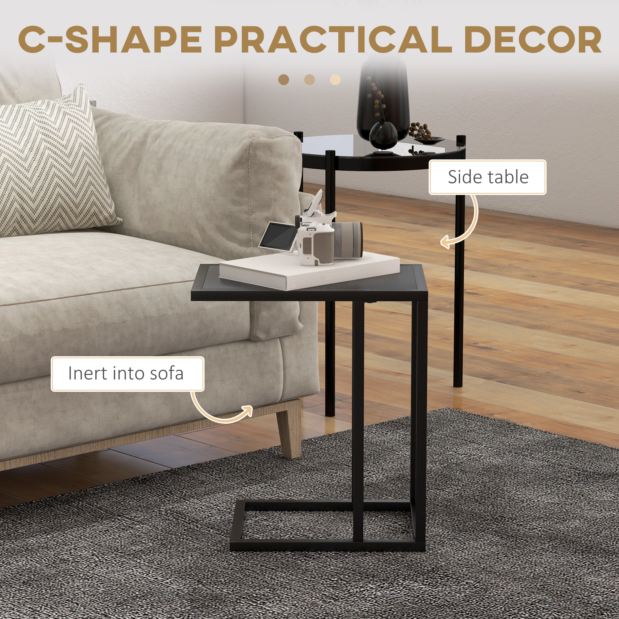 Add a touch of chic styling into your home with this table from HOMCOM. Crafted into a unique 'C' shape, it will bring in extra surface area without taking up too much room in the home. The frame is made from steel for a tough structure, with a particle board top for a solid and even surface, which is finished in a monochrome look. The extra-long base provides balance and stability, meaning this piece won't topple over easily. A sophisticated space-saver to love for years to come.
