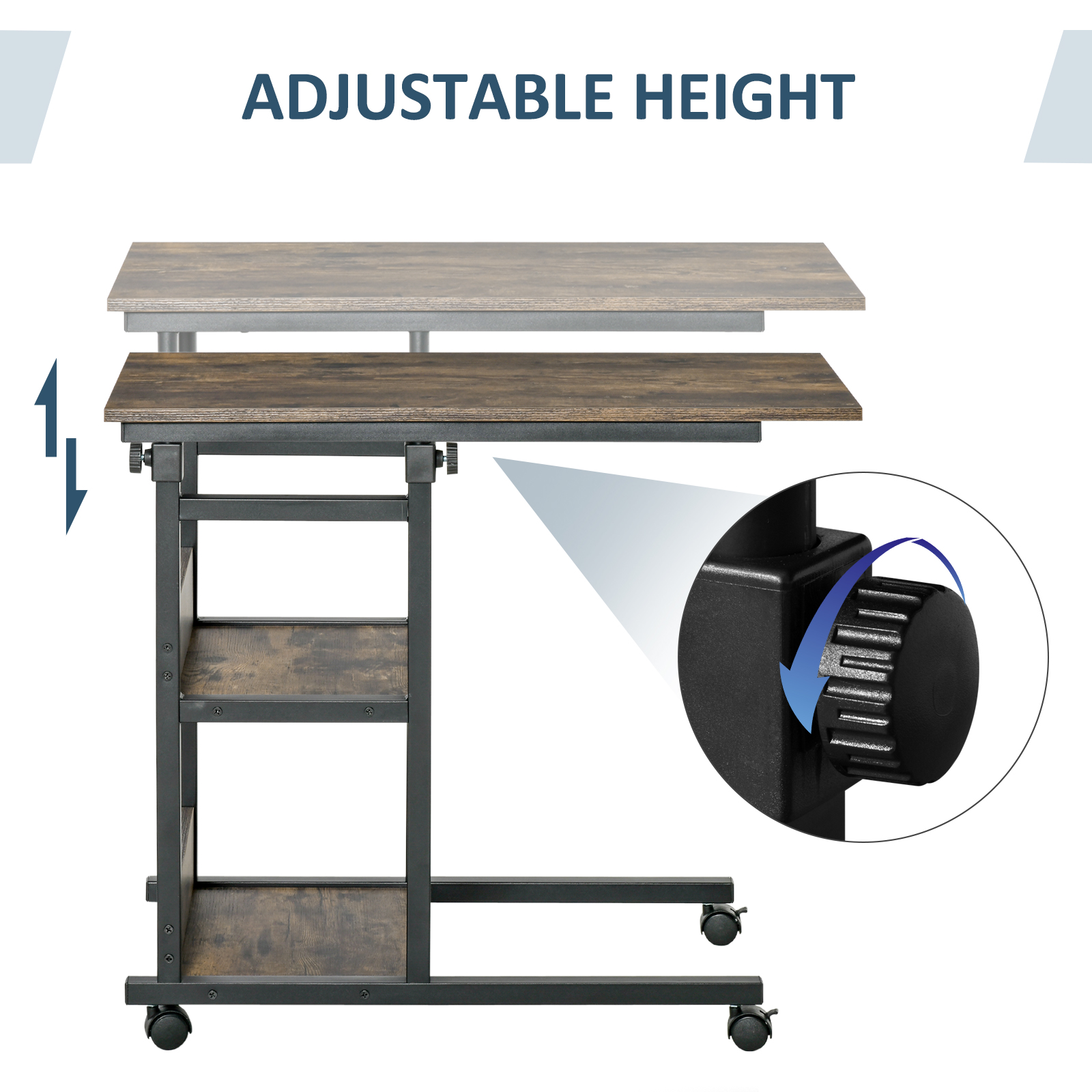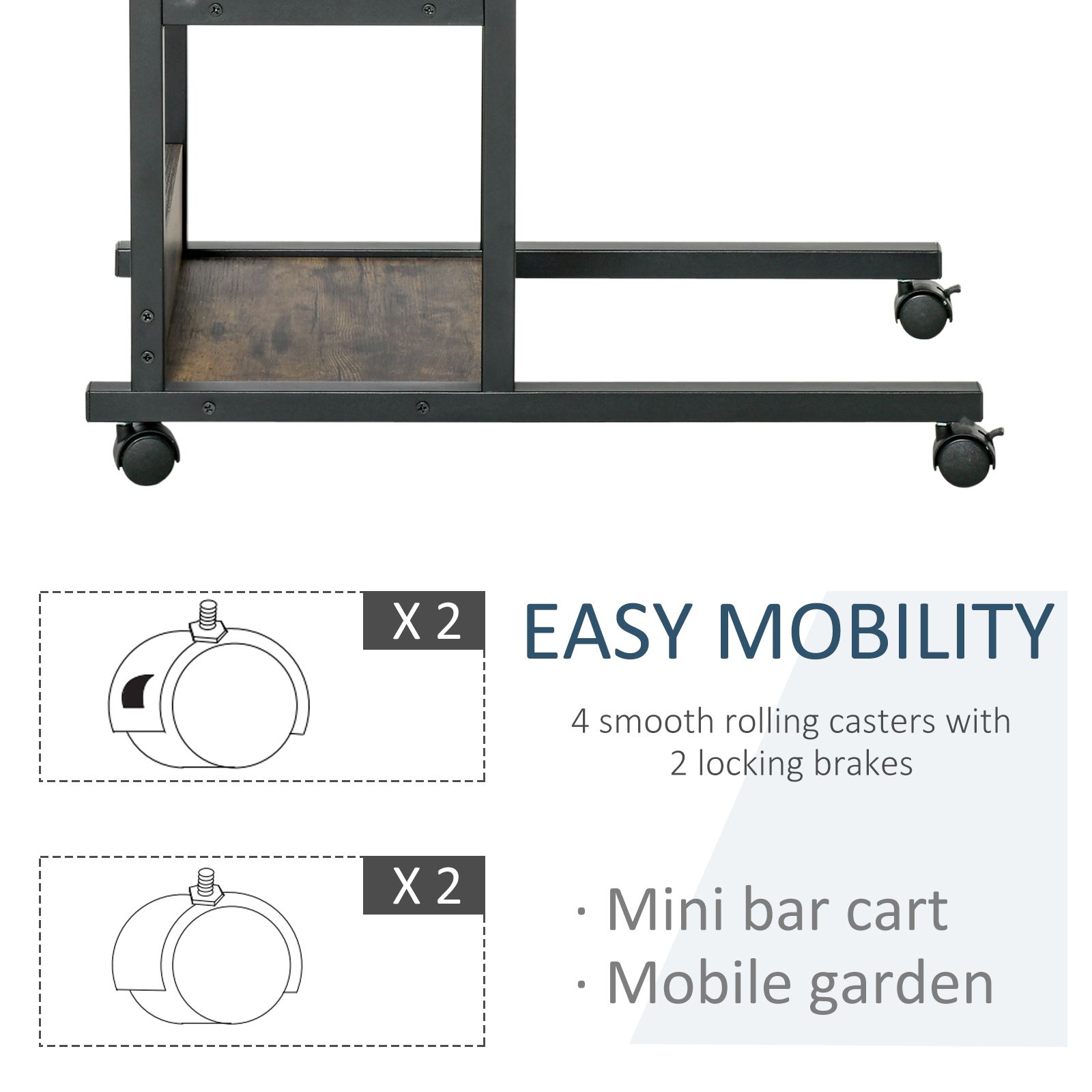 Need a practical side table to store your daily essentials, but also have limited space within your home? This simple and classic mobile side table from HOMCOM will be an ideal choice for you. The unique C-shaped design of this rolling coffee table makes it ideal for various occasions. It can be a bedside table, sofa side table, mini bar cart, mobile garden and etc. Choose this high quality and cost-effective table and enjoy the convenience and flexibility.