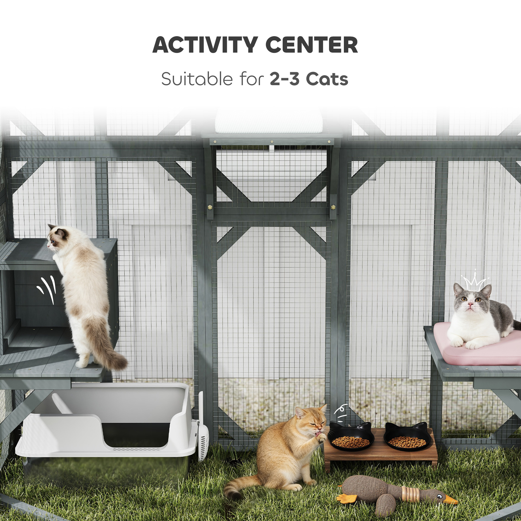 Does the guilt of keeping your cats indoors weigh on you, knowing they crave fresh air but the outdoors is unsafe? Stop crouching to clean tiny enclosures. This PawHu catio is your solution. Step inside the full-height door effortlessly. This multi-level outdoor cat enclosure offers your feline friends a secure haven with dense mesh, while four platforms and a condo ensure harmonious play. Your cats can finally bask in the sun, secure in their spacious retreat.