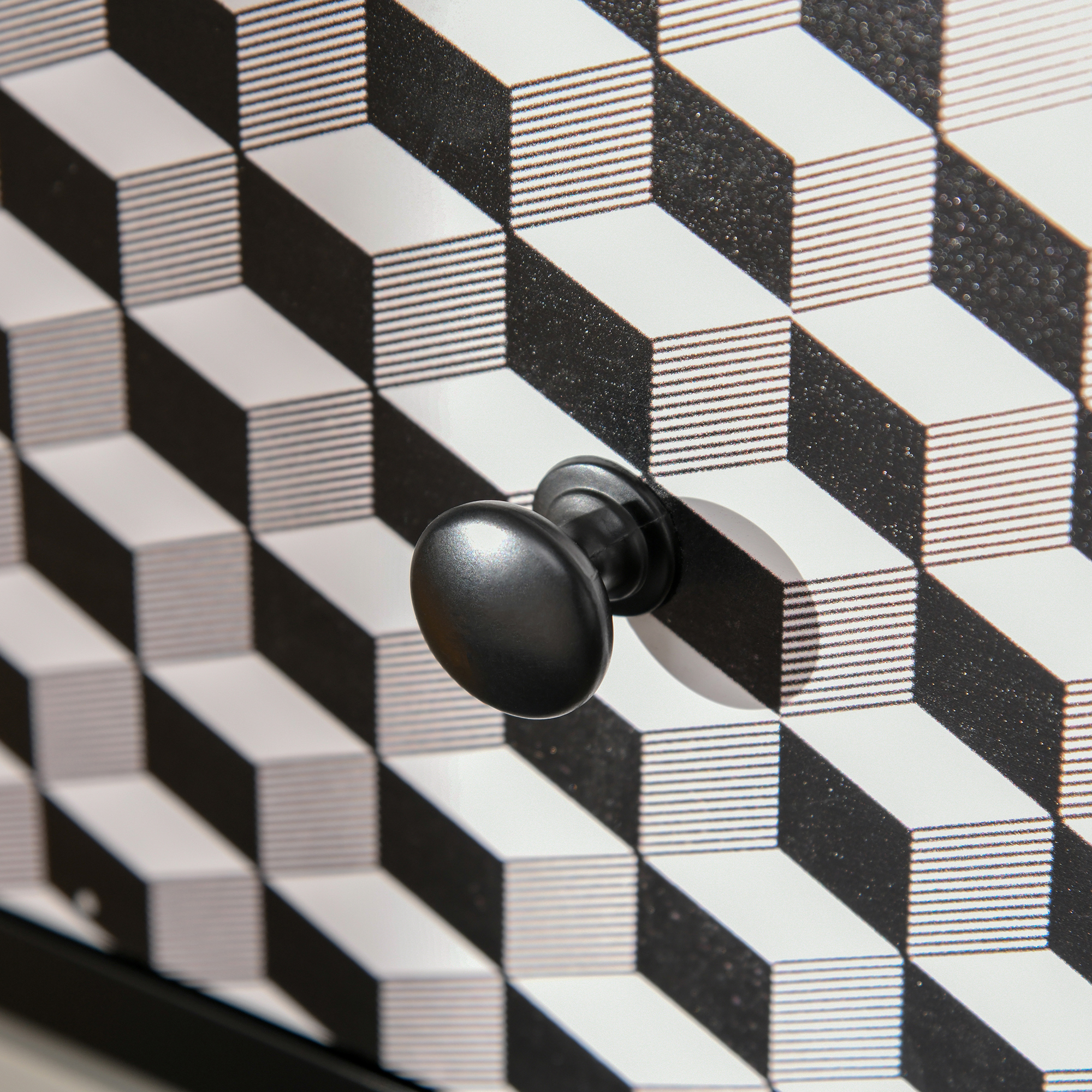 - Geometric patterns on the drawer fronts add special beauty for the whole look